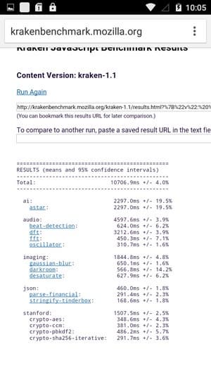 Что касается бенчмарков для оценки скорости движка javascript, то стоит всегда делать скидку на то, что в них результаты существенно зависят от браузера, в котором запускаются, так что сравнение может быть истинно корректным только на одинаковых ОС и браузерах, а такая возможность имеется при тестировании не всегда. В случае с ОС Android мы всегда стараемся использовать Google Chrome.