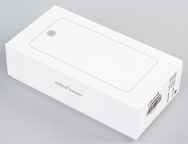 Ulefone Be Touch поставляется в продажу в небольшой прямоугольной коробке, выполненной из твердого картона. Упаковка выполнена аккуратно, оформлена достаточно стильно, внешне сильно напоминает таковую у iPhone 6 Plus, с которой, собственно, и копировалась.
