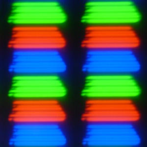 В данном смартфоне используется матрица типа IPS. Микрофотографии демонстрируют типичную для IPS структуру субпикселей: