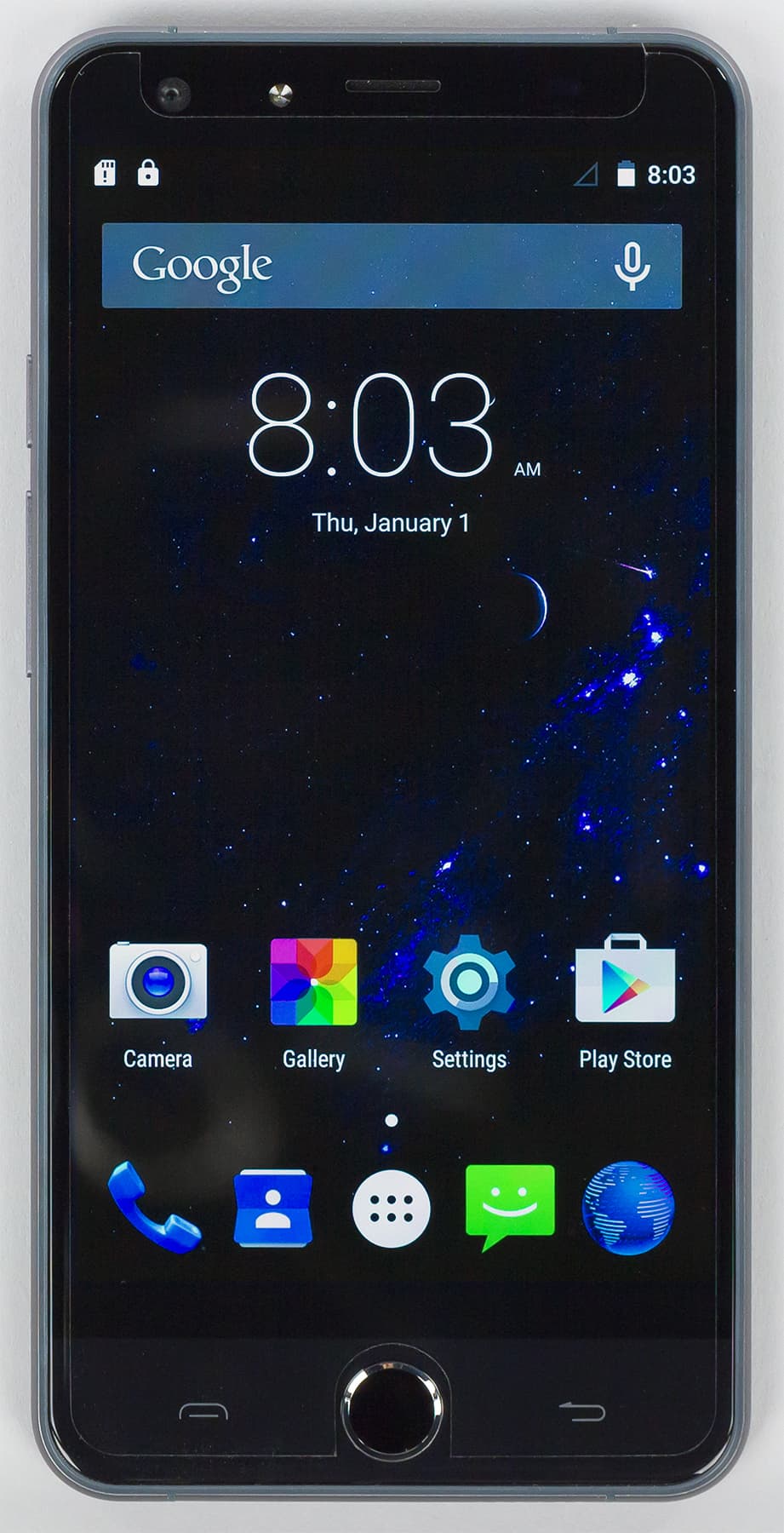 Передняя сторона полностью прикрыта защитным стеклом Corning Gorilla Glass 3 с едва заметно покатыми краями — разработчики называют это 2,5D-стеклом. На передней панели не все так хорошо, как хотелось бы: сенсорные кнопки под экраном не подсвечиваются, а индикатора событий здесь не предусмотрели вовсе.