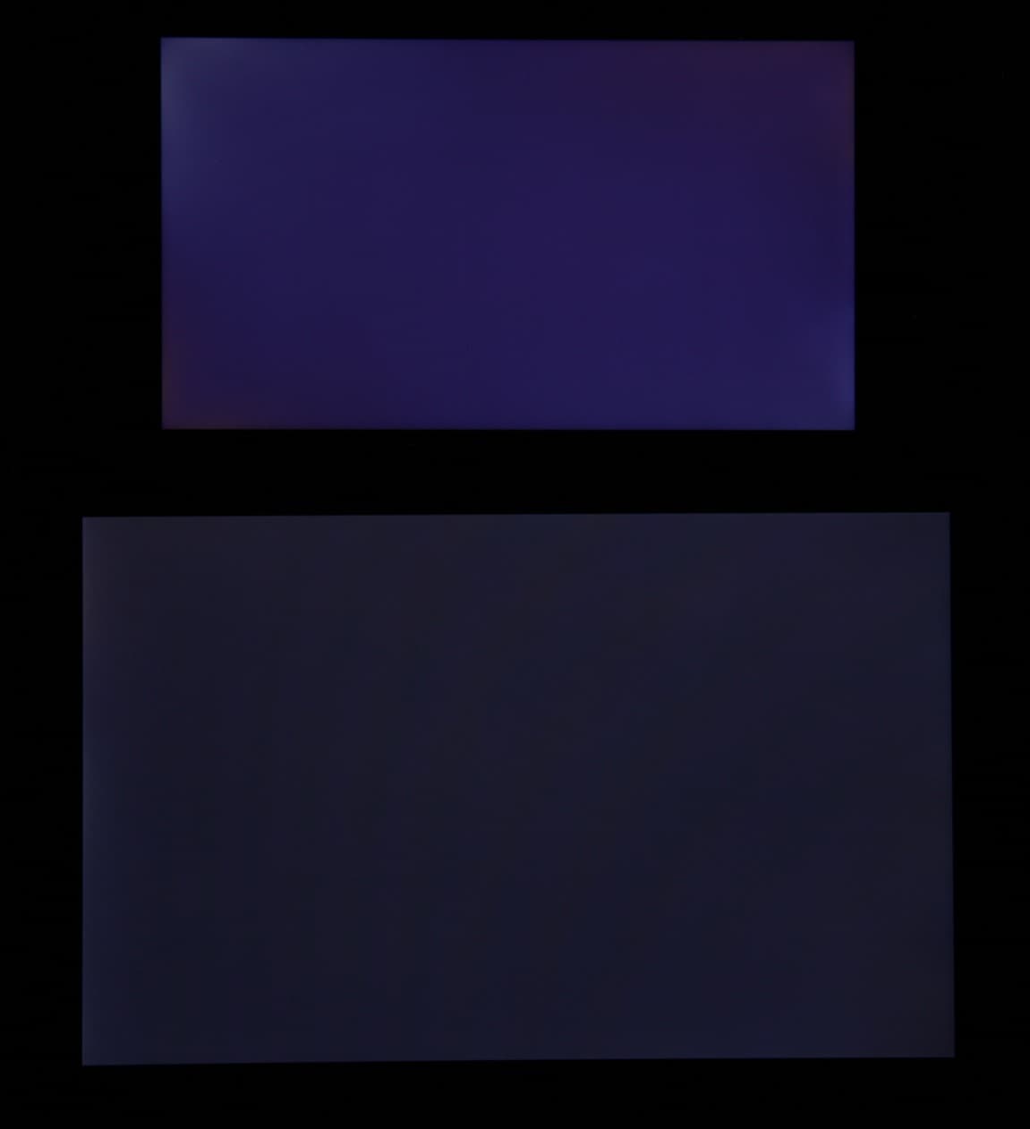 При перпендикулярном взгляде равномерность черного поля средняя, так как ближе к краю черный местами высветляется (тут яркость подсветки была принудительно увеличена):