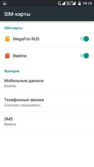 Смартфон поддерживает работу с двумя SIM-картами, и в целом работа с ними в меню организована по знакомому принципу: можно любую из SIM-карт назначить основной для организации голосовых звонков, передачи данных или отправки SMS-сообщений; при наборе номера также можно выбрать желаемую карту в контекстном подменю. С сетями 3G/4G может работать SIM-карта в любом слоте, однако одновременно в этом режиме может функционировать лишь одна из карт. Для смены назначений слотов карточки менять местами не требуется — это можно сделать прямо из меню телефона. Работа с двумя SIM-картами организована по привычному стандарту Dual SIM Dual Standby, когда обе карты могут находиться в активном режиме ожидания, но одновременно работать не могут — радиомодуль здесь только один.