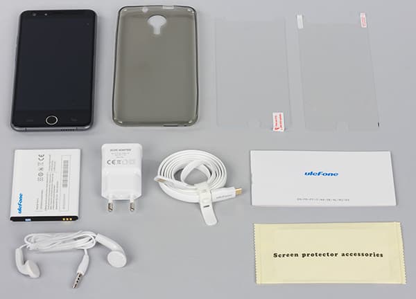 Ulefone Be Touch 2 поставляется в продажу в квадратной плоской коробке, выполненной из твердого нелакированного картона. Упаковка выполнена аккуратно, но оформлена достаточно скромно, хотя и присутствует некий намек на премиальность: надписей минимум, разноцветия нет, картинок тоже.