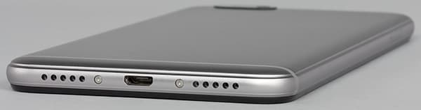 Универсальный разъем Micro-USB в нижнем торце поддерживает подключение внешних устройств в режиме USB OTG. За рядом отверстий правее него скрывается динамик, а за отверстиями слева — возможно, микрофон (хотя столько отверстий для него не нужно).