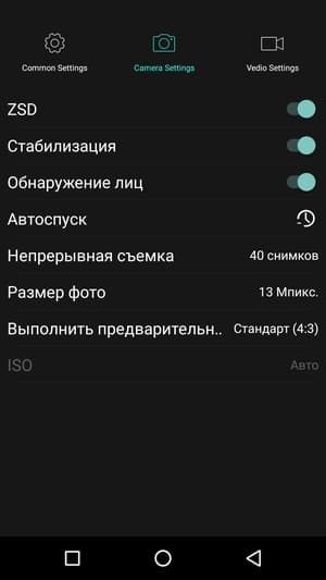 Камера имеет довольно удобное и подробное меню настроек, есть дополнительные режимы, есть профессиональный ручной режим с выбором значений светочувствительности (до ISO 1600), экспокоррекции, баланса белого, а также насыщенности, яркости и контрастности. Есть режим HDR и автоопределение для сюжетных режимов.
