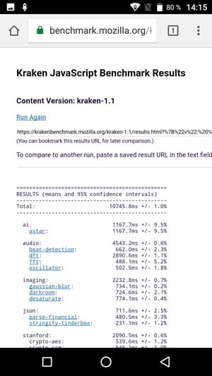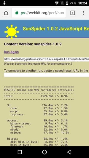 Что касается бенчмарков для оценки скорости движка javascript, то стоит всегда делать скидку на то, что в них результаты существенно зависят от браузера, в котором запускаются, так что сравнение может быть истинно корректным только на одинаковых ОС и браузерах, а такая возможность имеется при тестировании не всегда. В случае с ОС Android мы всегда стараемся использовать Google Chrome.