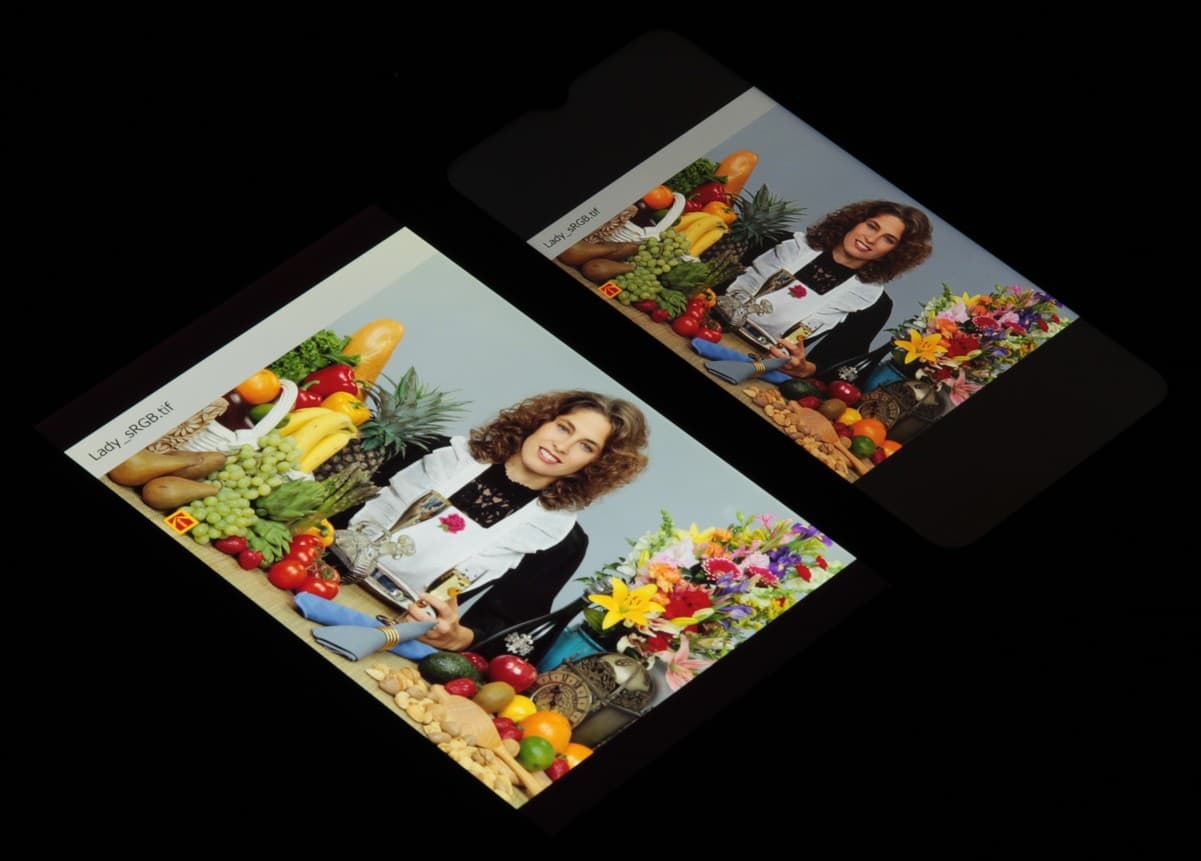 Видно, что цвета не сильно изменились у обоих экранов, но у Umidigi G1 Max контраст уменьшился в большей степени из-за сильного высветления черного и большего снижения яркости.