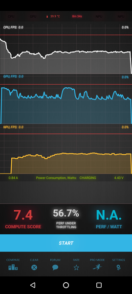 Тест на снижение производительности при нагреве мы проводим с помощью программы Burnout Benchmark, которая позволяет нагружать CPU, GPU и NPU: