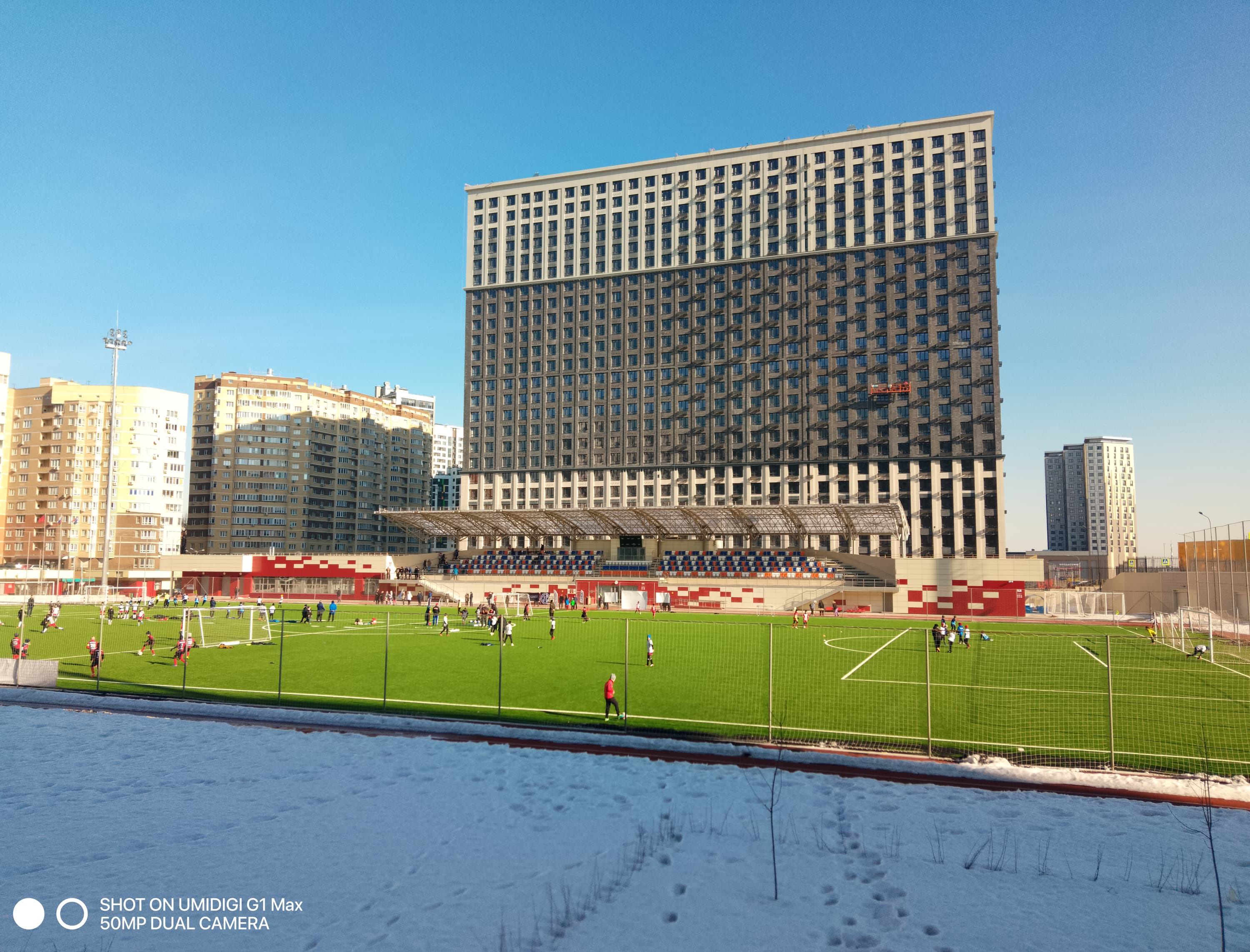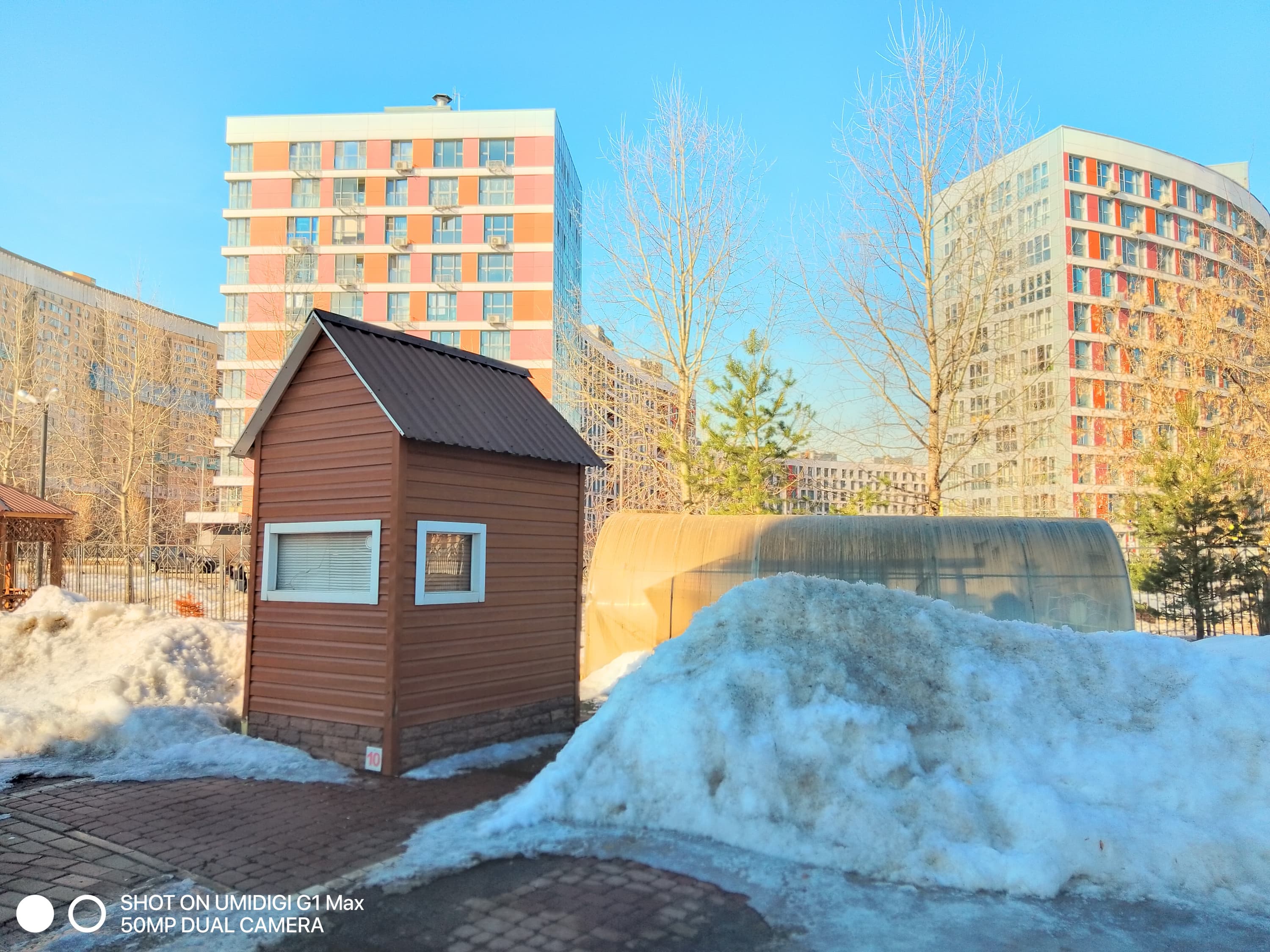Уровень съемки откровенно слабый. Детализация в 50-мегапиксельном режиме не самая плохая, но картинка при этом испещрена неприятными шумовыми артефактами, разглядывать такие снимки в полный размер не хочется. Для получения же 12,5-мегапиксельных фотографий применяется крайне неумелая обработка, уничтожающая при подавлении шумов даже намеки на детали, причем выборочно, кусками. Динамического диапазона матрицы недостаточно для обычных дневных снимков, причем программа обработки не может найти даже приемлемый баланс: то всё слишком темное, то всё пересвеченное. В общем, при текущем уровне программной реализации камера годится лишь для создания миниатюр, до уровня обработки в SoC Qualcomm и MediaTek тут очень далеко.