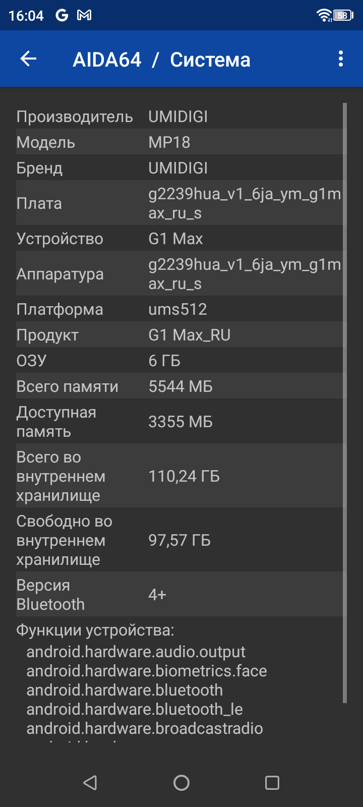 Основные характеристики Umidigi G1 Max (модель MP18)
