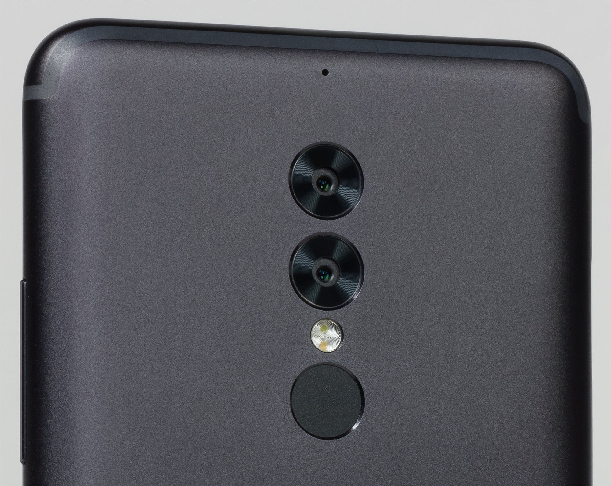 Если сравнивать с моделью Umidigi S, то у S2 более привлекательная задняя сторона: здесь тоже два отдельных модуля камер, но ни один из них не выпирает и оба окошка имеют одинаковый размер. Результат смотрится симпатично, а точно такая же по диаметру круглая площадка сканера отпечатков пальцев удачно вписывается в общую картину.