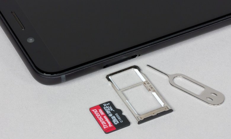 Боковой разъем под карточки гибридный, для установки карты памяти придется вынуть одну из двух SIM-карт (обе — формата Nano-SIM). Поддерживается горячая замена карт.