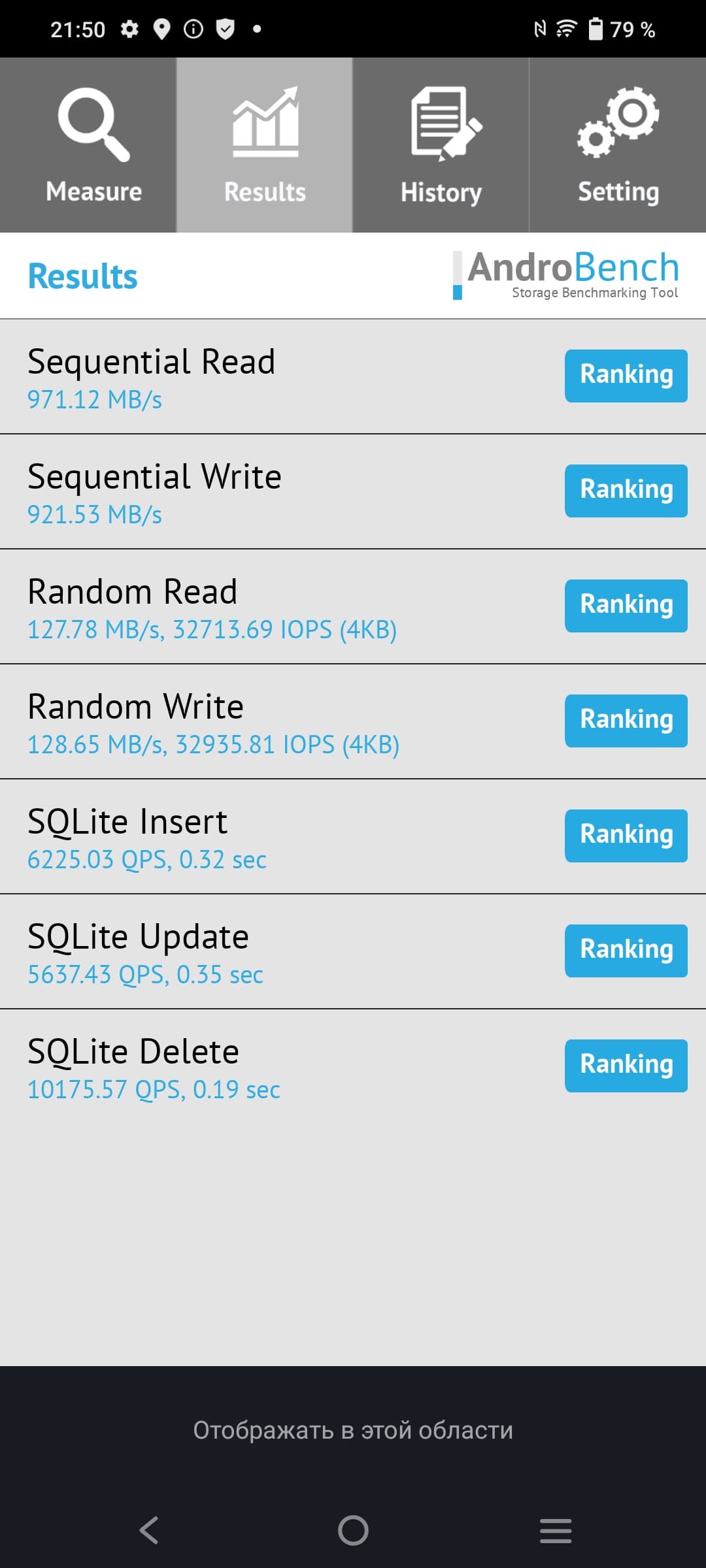 Результаты теста AndroBench на скорость работы с памятью: