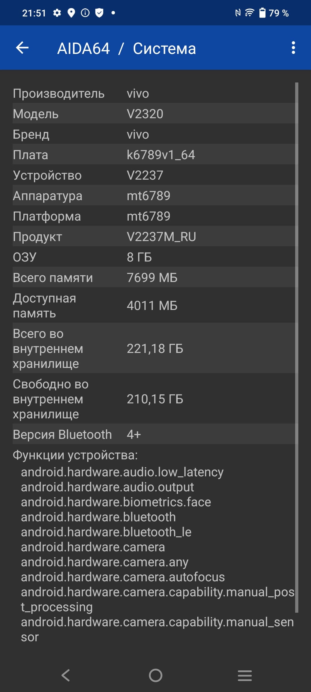 - SoC Mediatek Helio G99, 8 процессорных ядер (2×Cortex-A76 @2,2 ГГц + 6×Cortex-A55 @2,0 ГГц)
