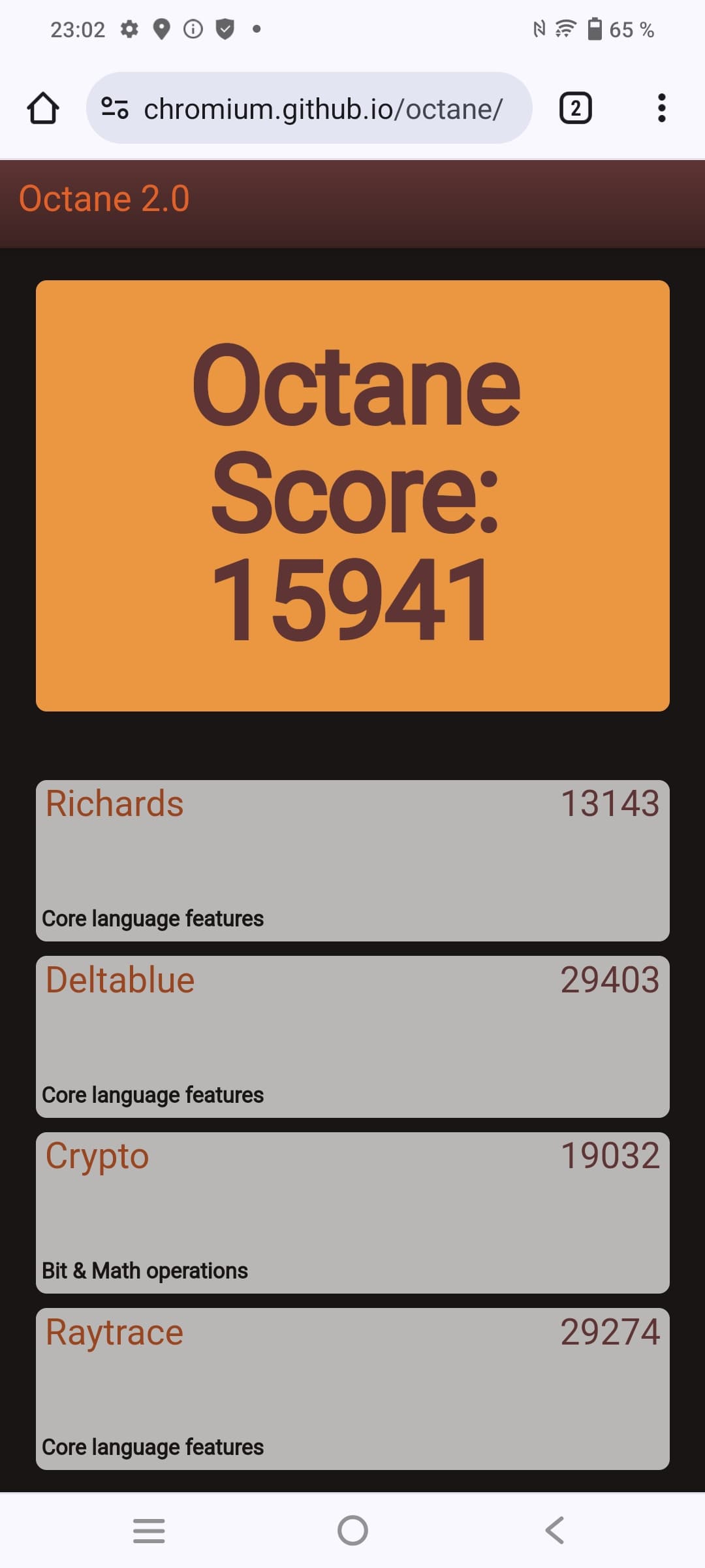 | Google Octane 2 (больше — лучше) | 15941 | 33129 | 29329 | 27070 | 30618 |