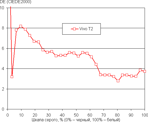 (Самые темные области шкалы серого в большинстве случаев можно не учитывать, так как там баланс цветов не имеет большого значения, да и погрешность измерений цветовых характеристик на низкой яркости большая.)