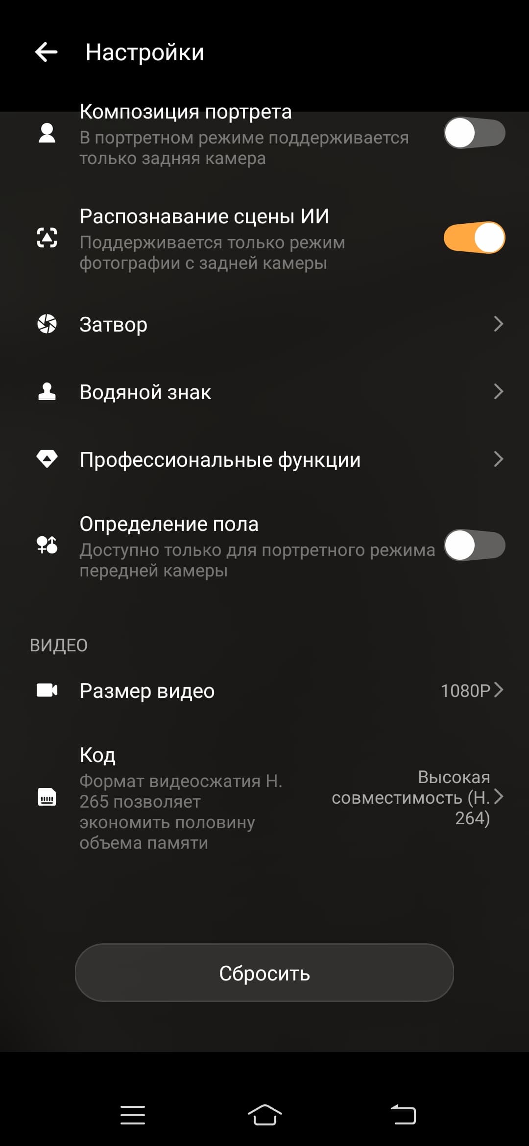 Это же касается и неудобства управления камерой: намудрили с лишними панелями. Обычной прокрутки с выбором режимов снизу показалось недостаточно: зачем-то нарисовали малоприметный кружок, под которым спрятаны режимы широкоугольной съемки, портретного размытия фона и макросъемки. Поначалу тяжело догадаться, что разработчики просто «распихали» все функции абы куда.