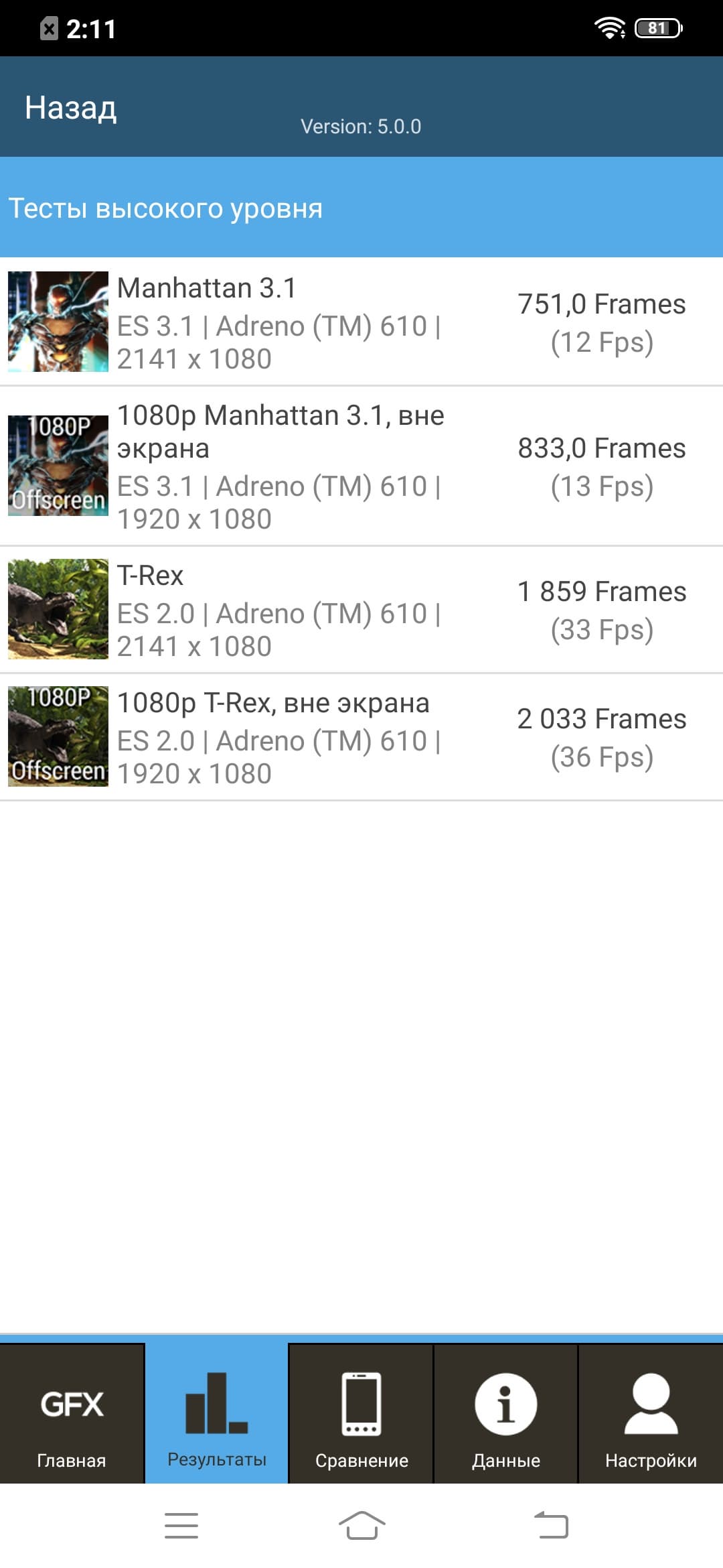 | GFXBenchmark T-Rex (1080p Offscreen, fps) | 36 | 39 | 41 | 76 | 32 |