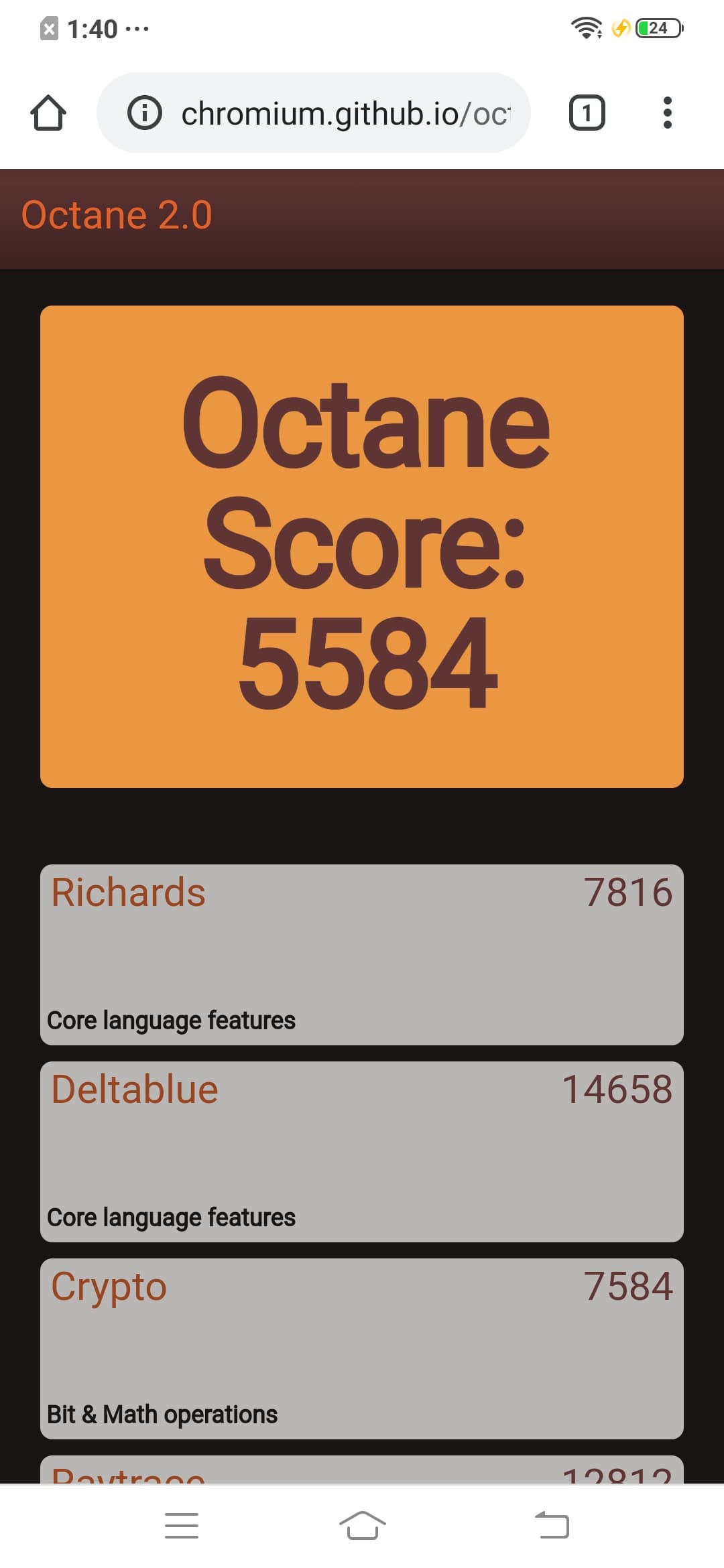 | Google Octane 2 (больше — лучше) | 5584 | 9528 | 16007 | 9842 | 8169 |