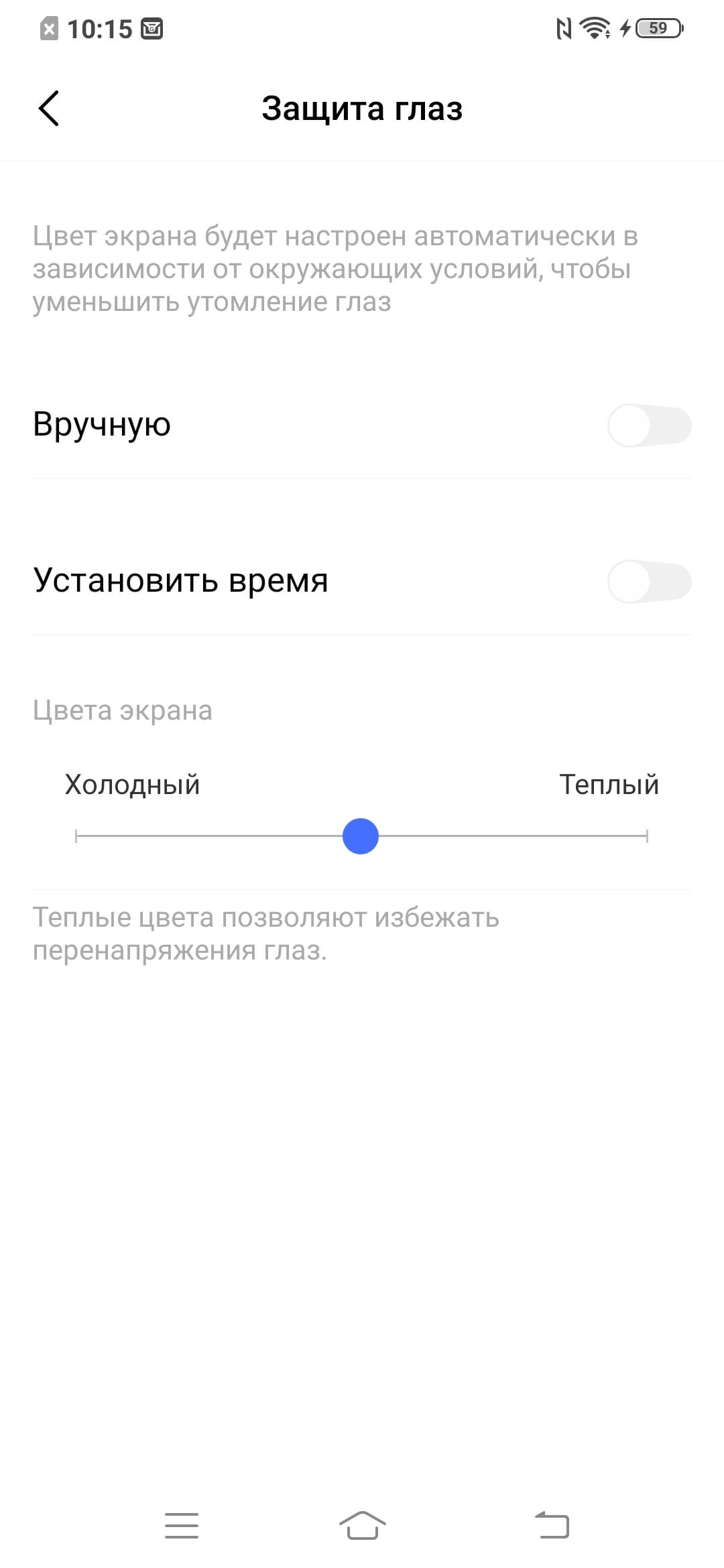 Разумеется, присутствует модная настройка (Защита глаз), позволяющая снизить интенсивность синей компоненты: