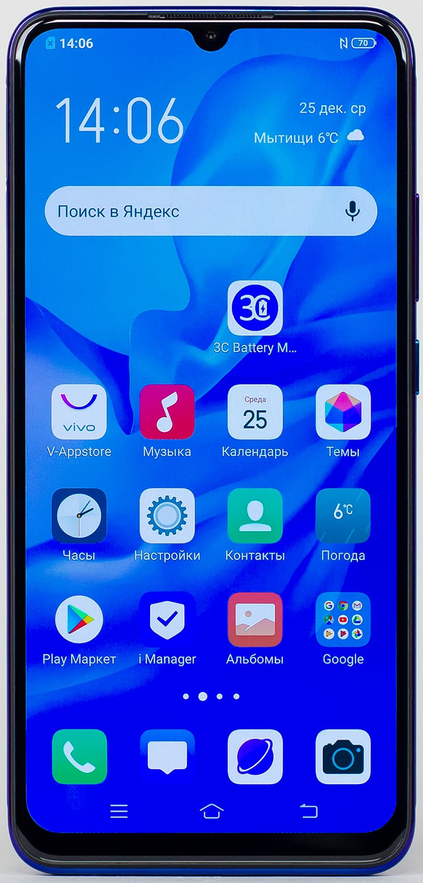 В Vivo v17 встроена батарея с довольно большим объемом 4500 мА·ч. С ней аппарат демонстрирует очень высокие показатели автономности, граничащие с рекордными. Это вполне обоснованно, учитывая не слишком мощную аппаратную платформу и экономичный дисплей. В реальной жизни смартфон живет так же, как и большинство других: дотягивает до вечерней зарядки, но на большее рассчитывать не стоит.