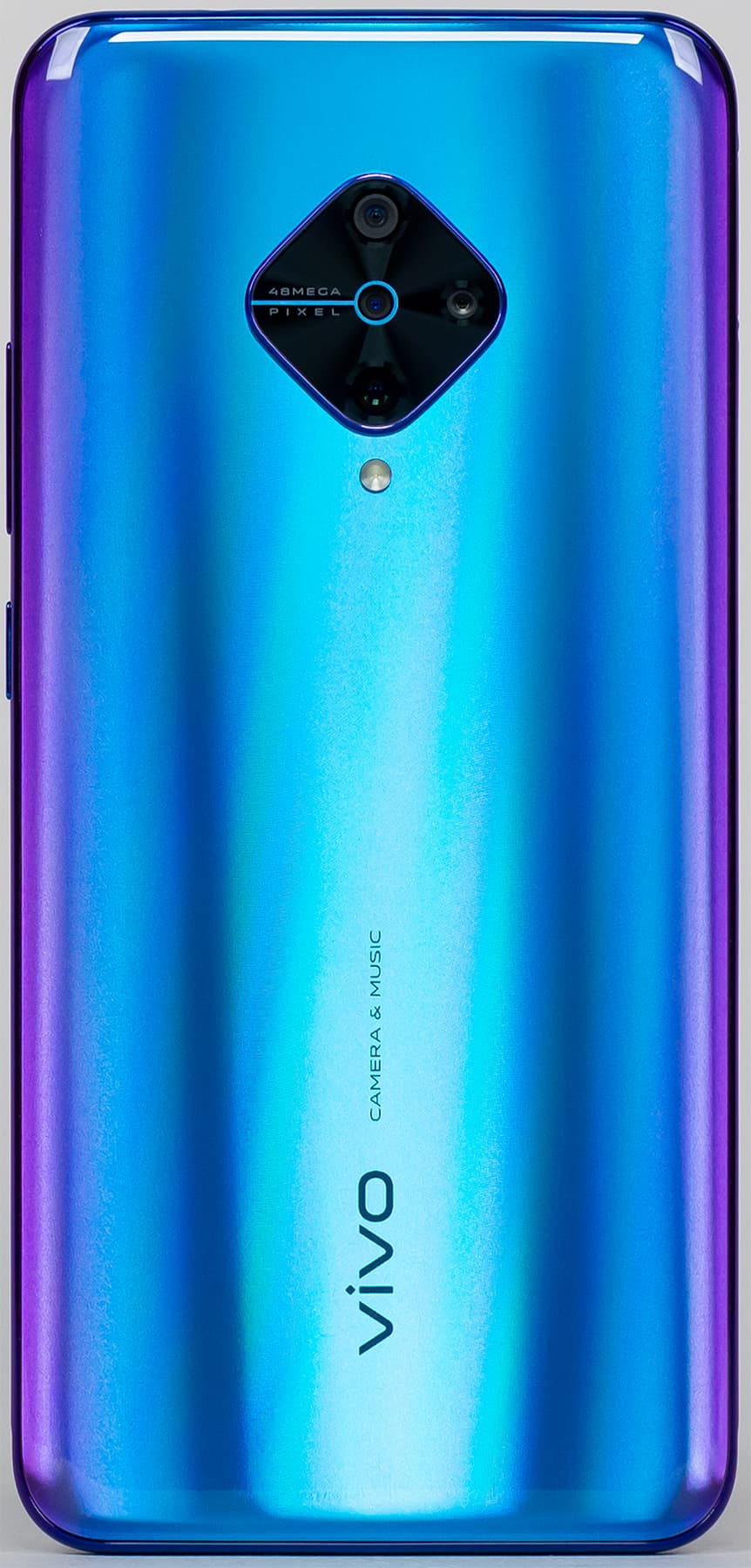 У Vivo v17 был бы самый обычный по сегодняшним меркам дизайн, если бы не оформление тыльной камеры — ромбом. Разработчики нашли отличный вариант размещения четырех глазков камер — явно лучше, чем в Apple iPhone 11 и уж тем более в Huawei Mate 30 Pro.