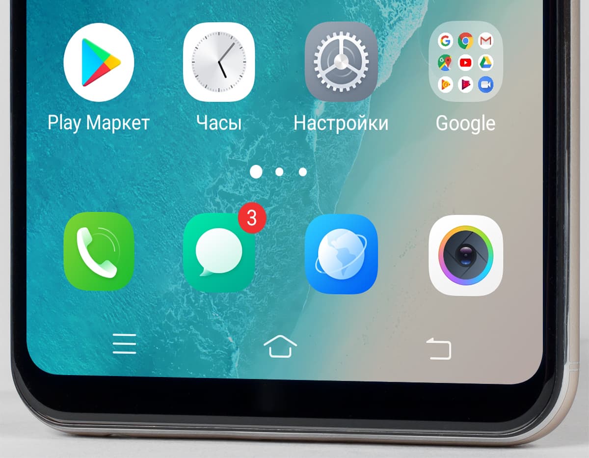 Внизу под экраном нет сенсорных аппаратных кнопок, здесь оставлена очень узкая полоска пустого места.