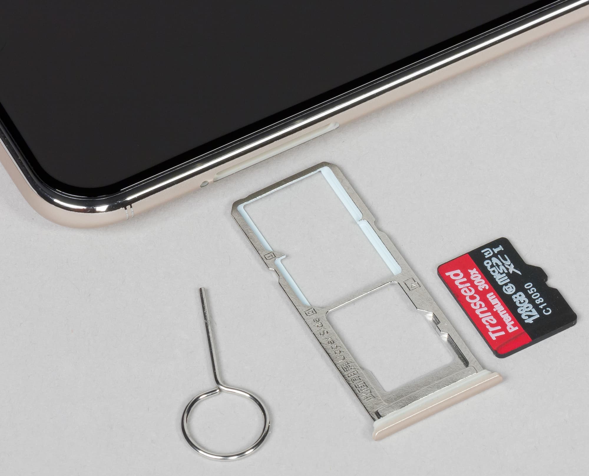 Разъем для карт не гибридный, а тройной: в него можно установить сразу и две Nano-SIM-карты, и карту памяти. Аппарат при установке и замене карточек автоматически перезагружается.