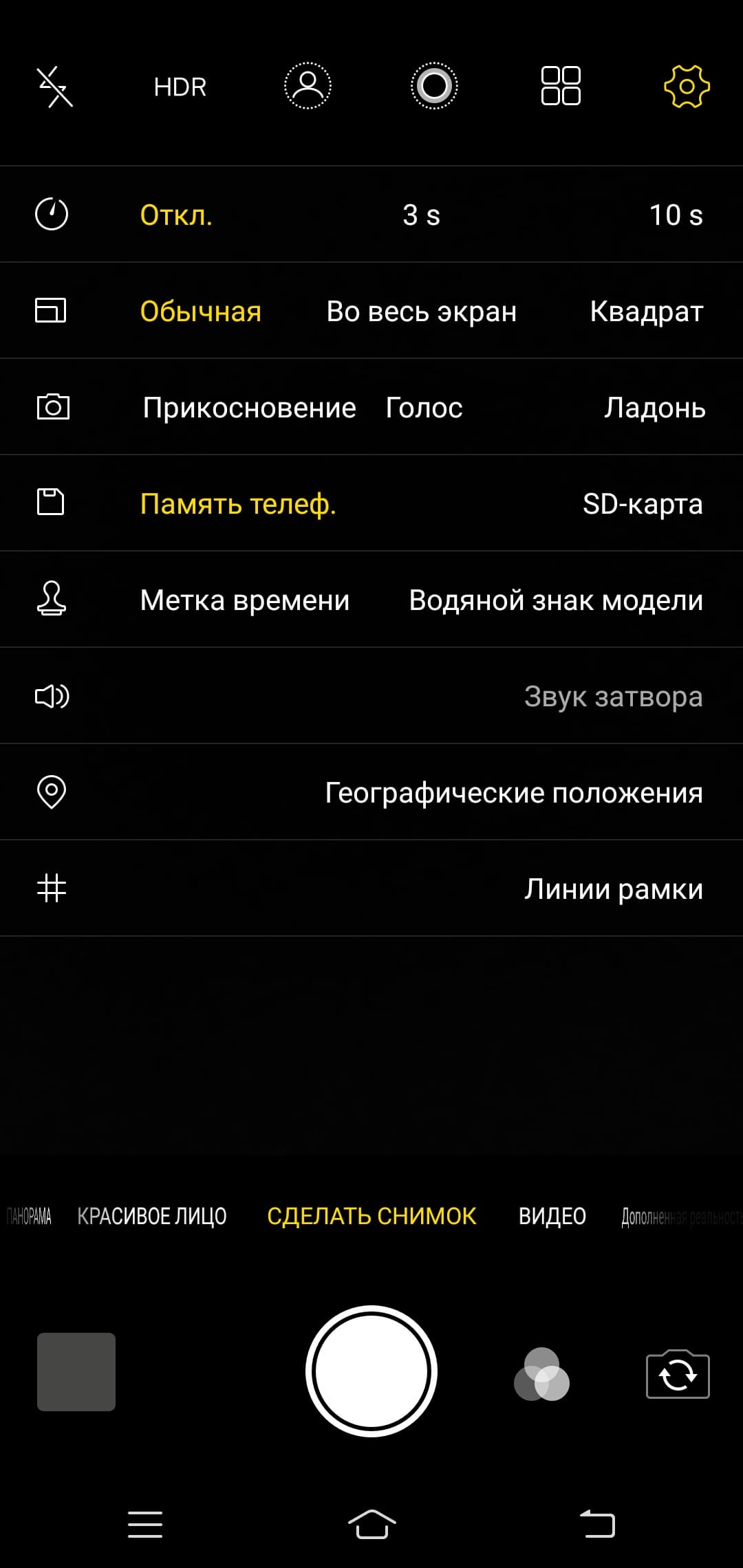 Меню камеры такое же, как у Oppo F7: оно совершенно не похоже на то, что можно увидеть у большинства Android-смартфонов, но схоже с меню камеры iPhone: выбор осуществляется с помощью прокрутки под экраном видоискателя. Штатной возможности сохранения снимков в RAW здесь не предусмотрено.