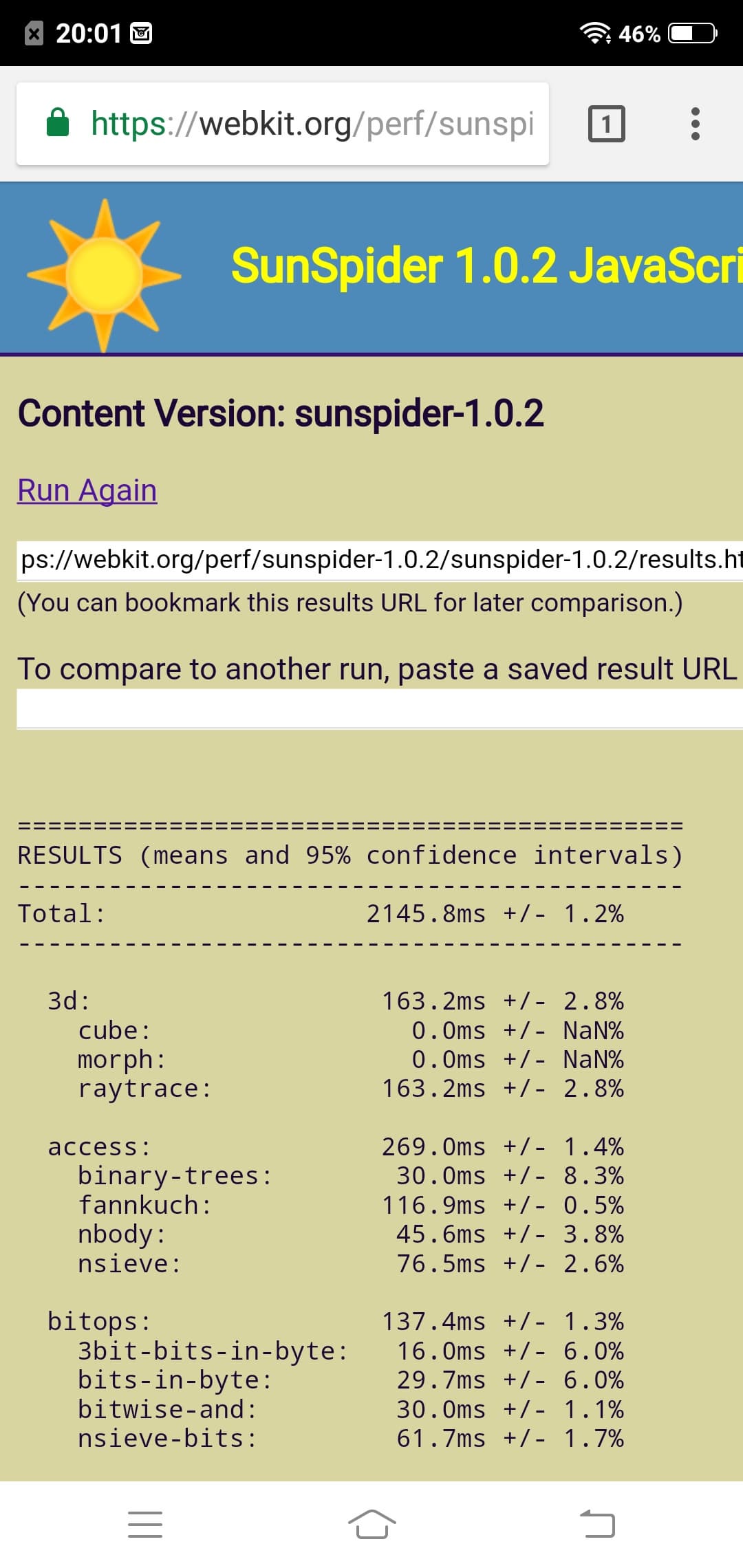 Что касается бенчмарков для оценки скорости движка javascript, то стоит всегда делать скидку на то, что в них результаты существенно зависят от браузера, в котором запускаются, так что сравнение может быть истинно корректным только на одинаковых ОС и браузерах, а такая возможность имеется при тестировании не всегда. В случае с ОС Android мы всегда стараемся использовать Google Chrome.