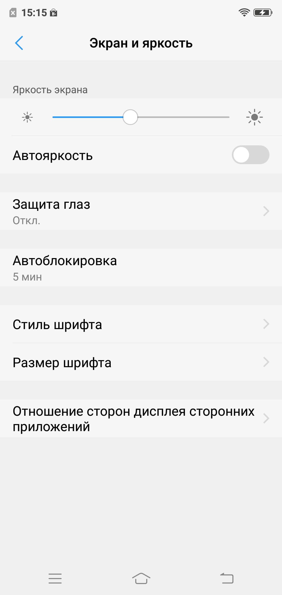 Яркость дисплея можно подстраивать вручную или использовать автоматические настройки, основанные на работе датчика внешнего освещения.