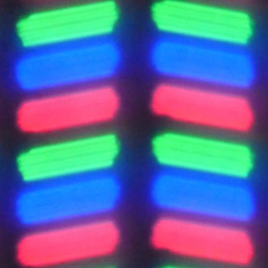 В данном смартфоне используется матрица типа IPS. Микрофотографии демонстрируют типичную для IPS структуру субпикселей: