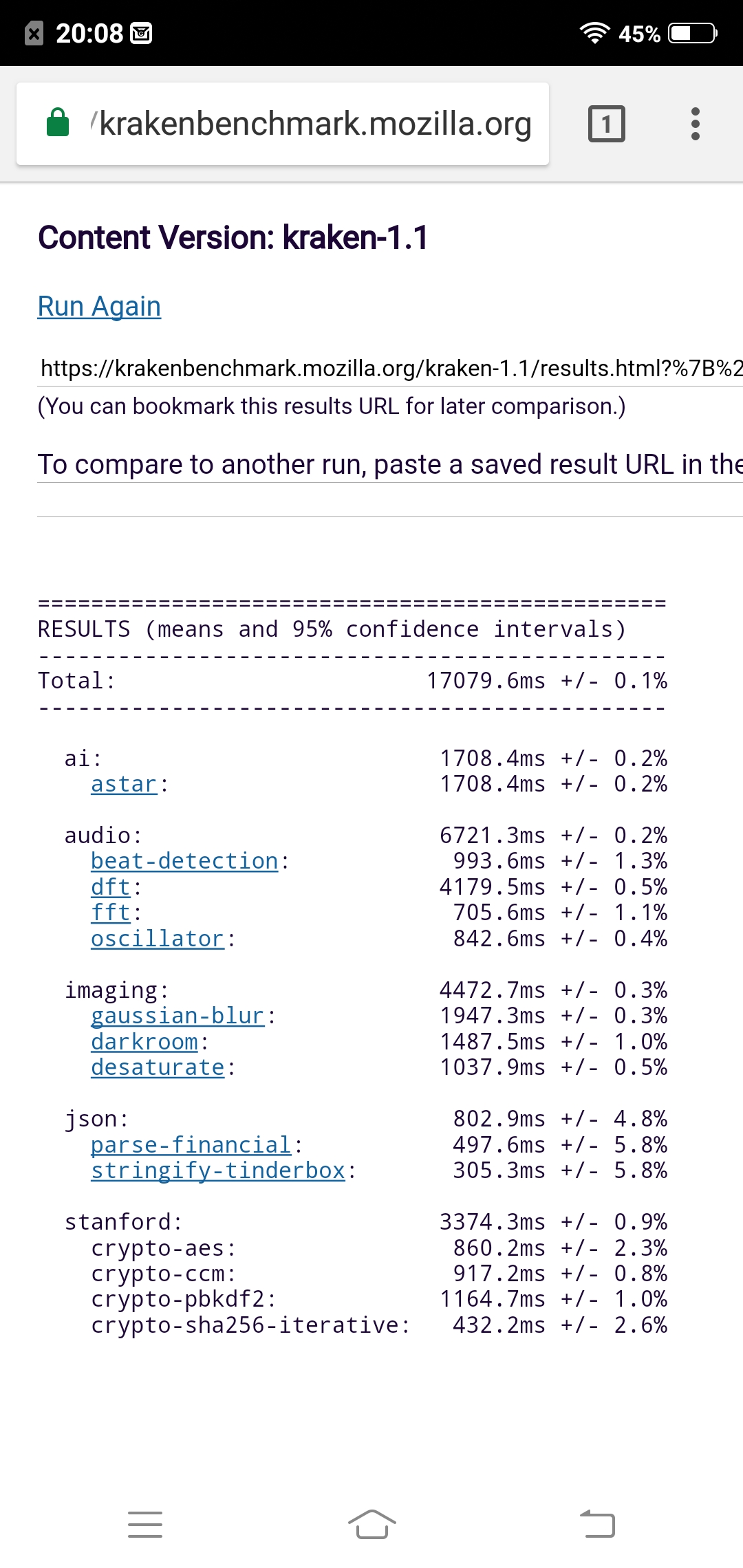 | Mozilla Kraken (мс, меньше — лучше) | 17080 | 4738 | 14182 | 4463 | 9666 |