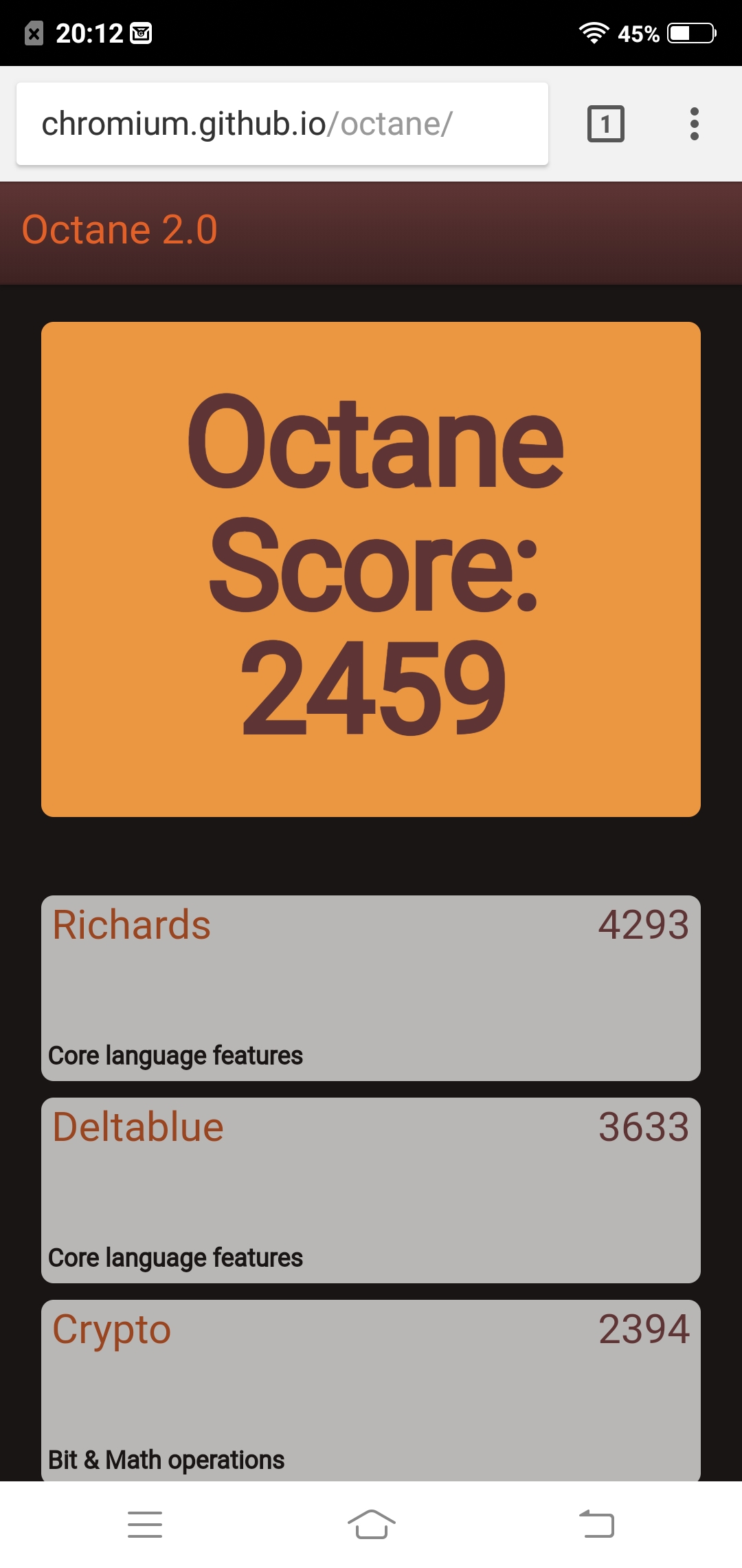 | Google Octane 2 (больше — лучше) | 2459 | 4874 | 3338 | 8450 | 4696 |