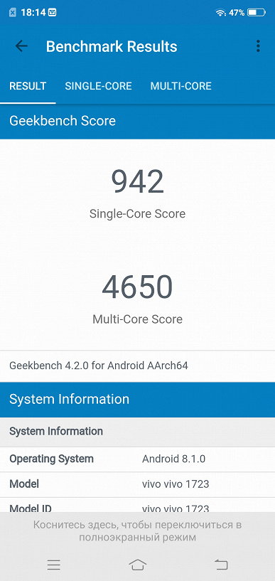 - Операционная система Android 8.1, Funtouch OS 4.0