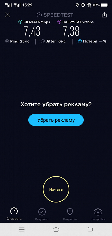 В чип Qualcomm Snapdragon 626 входит модем Qualcomm Snapdragon X9 LTE с поддержкой LTE Cat.7/Cat.13, способный обеспечить скорость обмена данными 300/150 Мбит/с (на загрузку/отдачу). Смартфон в зависимости от региона может поддерживать шесть диапазонов частот LTE FDD, в том числе три используемых в России (Band 3, 7, 20). В пределах городской черты московского региона аппарат ведет себя уверенно, качество приема сигнала в беспроводных сетях нареканий не вызывает.