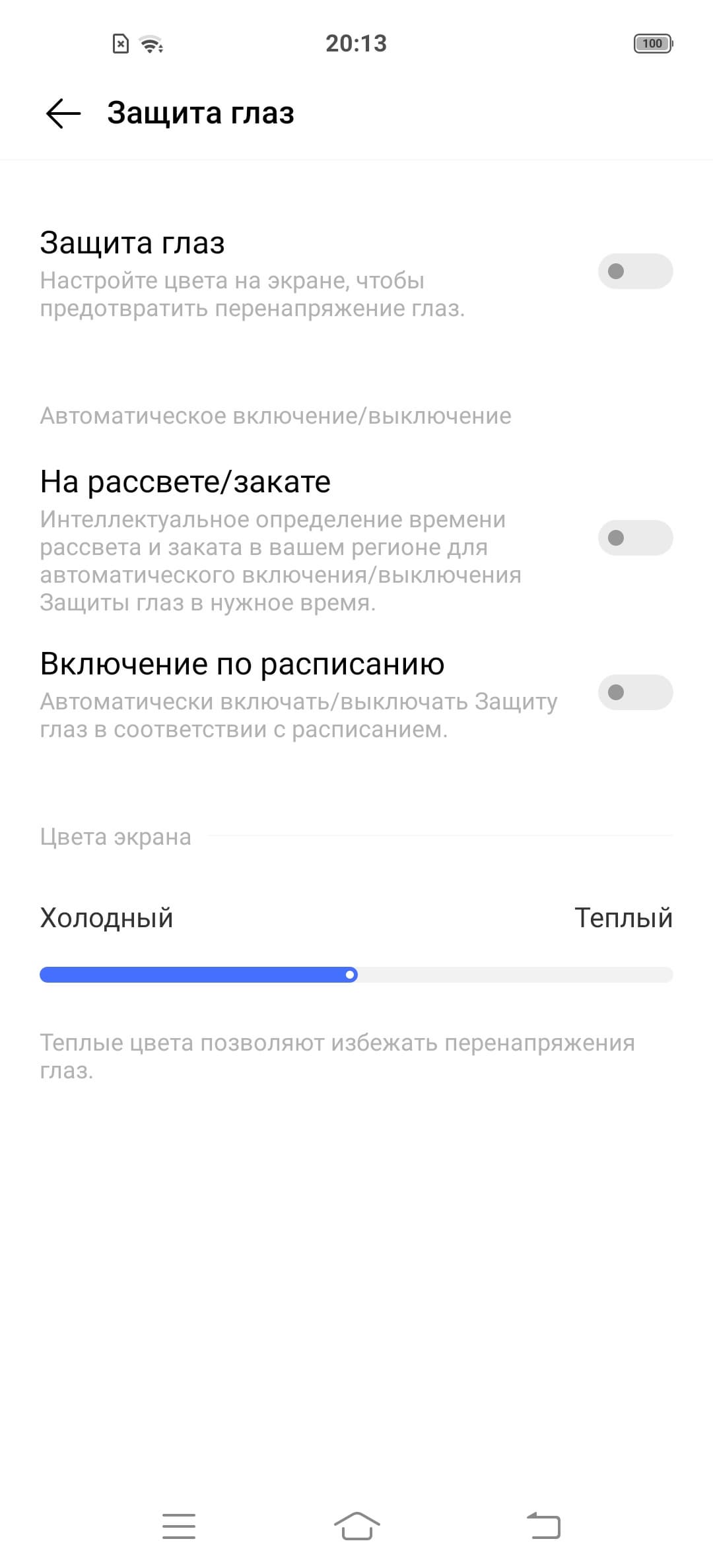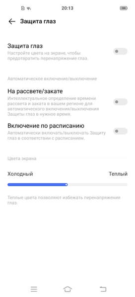 Разумеется, присутствует модная настройка (Защита глаз), позволяющая снизить интенсивность синей компоненты: