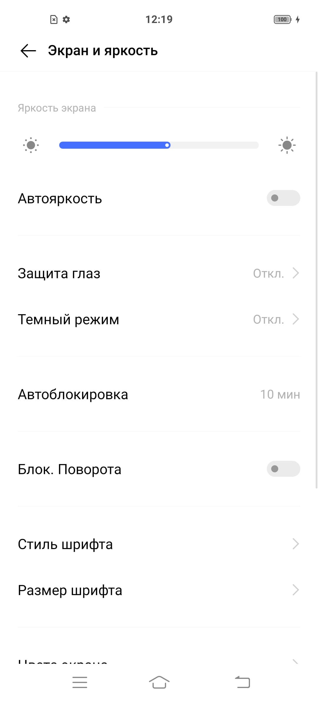 При ручном управлении яркостью и при выводе белого поля во весь экран максимальное значение яркости составило примерно 480 кд/м². В данном случае чем меньше площадь белого на экране, тем он светлее, то есть фактическая максимальная яркость белых участков будет почти всегда выше. В итоге читаемость экрана днем на солнце должна быть на приемлемом уровне. Минимальное значение яркости — 2 кд/м², то есть пониженный уровень яркости без проблем позволяет использовать устройство даже в полной темноте. Есть автоматическая регулировка яркости по датчику освещенности (он расположен под экраном близко к верхнему краю правее центра). В автоматическом режиме при изменении внешних условий освещенности яркость экрана как повышается, так и понижается. Работа этой функции зависит от положения ползунка регулировки яркости: им пользователь может попытаться выставить желаемый уровень яркости в текущих условиях. Если оставить все по умолчанию, то в полной темноте функция автояркости уменьшает яркость до 2 кд/м² (очень темно), в условиях освещенного искусственным светом офиса (примерно 550 лк) устанавливает на 125 кд/м² (нормально), а условно под прямыми лучами солнца повышает до 480 кд/м² (до максимума, так и нужно). Результат нас не совсем устроил, поэтому в полной темноте мы чуть увеличили яркость, получив в итоге для трех условий, указанных выше, следующие значения: 12, 120 и 480 кд/м² (идеальное сочетание). Получается, что функция автоподстройки яркости работает адекватно и позволяет пользователю настраивать свою работу под индивидуальные требования.