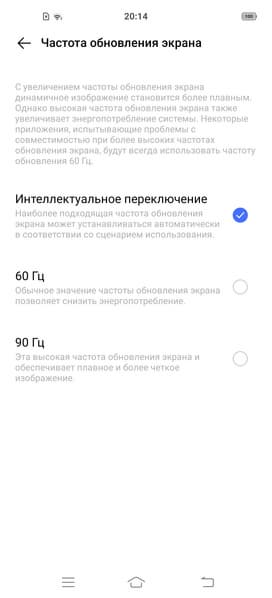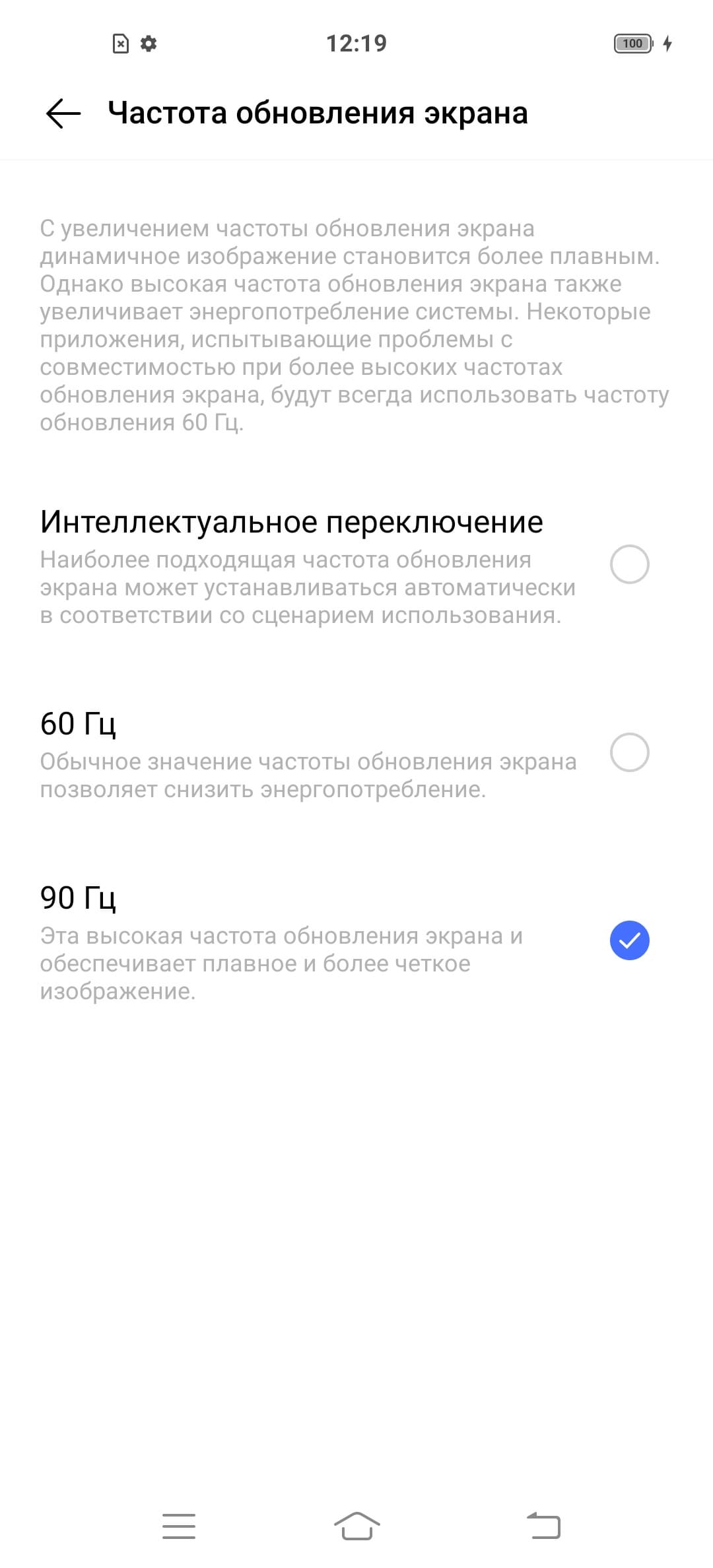 В настройках экрана можно включить режим с повышенной до 90 Гц частотой обновления:
