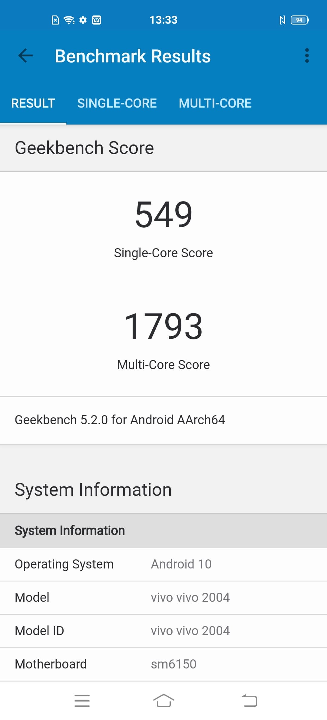 | GeekBench 5 (больше — лучше) | 549/1793 | 636/1961 | 567/1658 | 337/1371 | 602/1361 |
