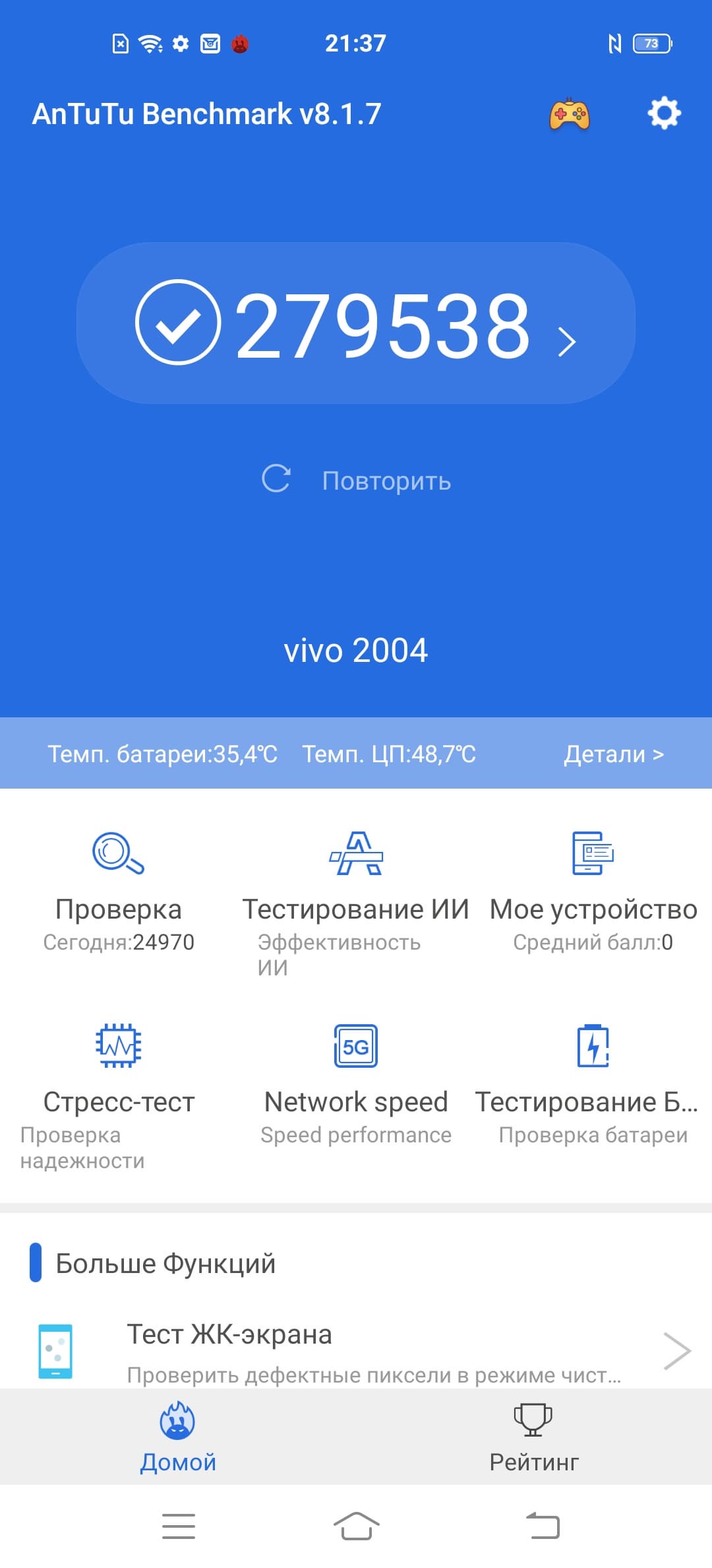 | AnTuTu (v8.x) (больше — лучше) | 279538 | 324723 | 288116 | 339871 | 256769 |