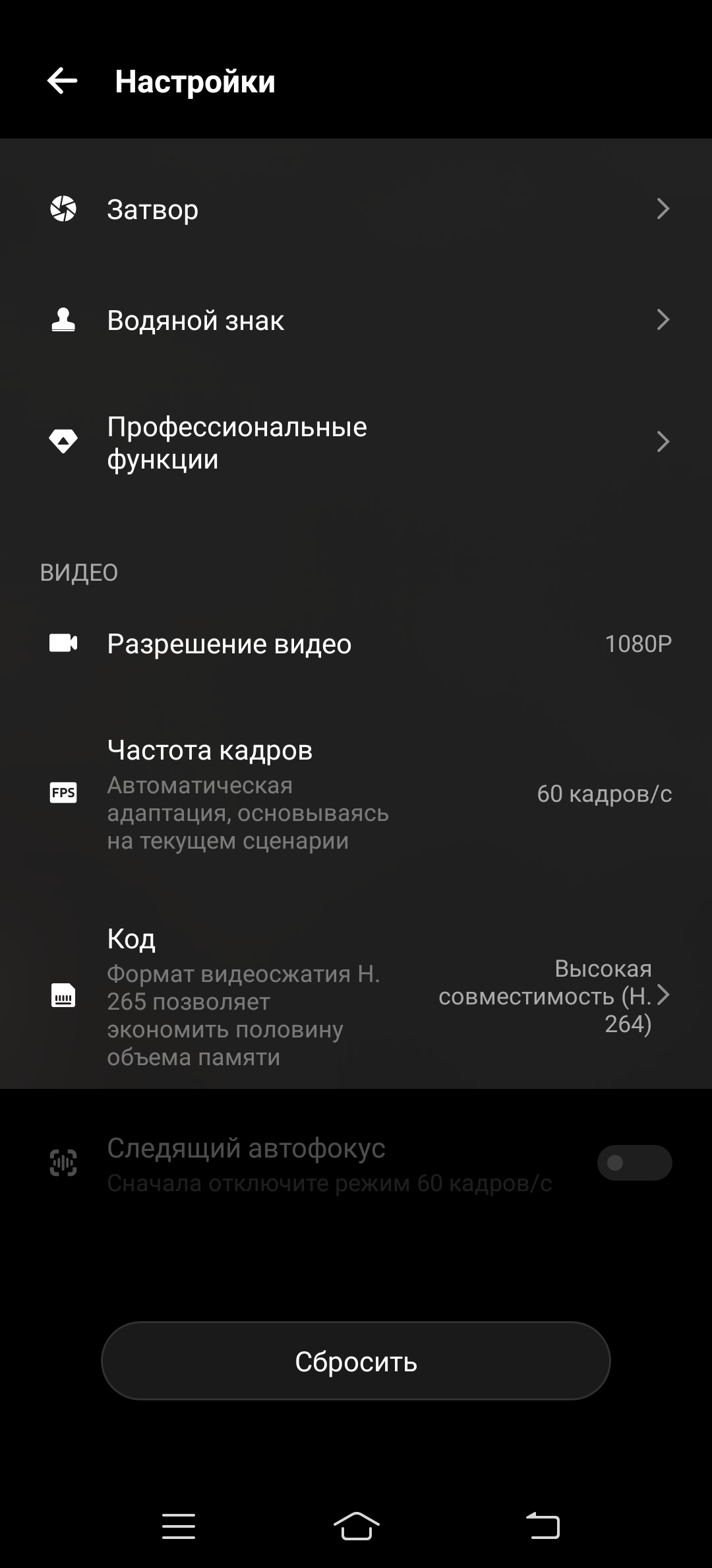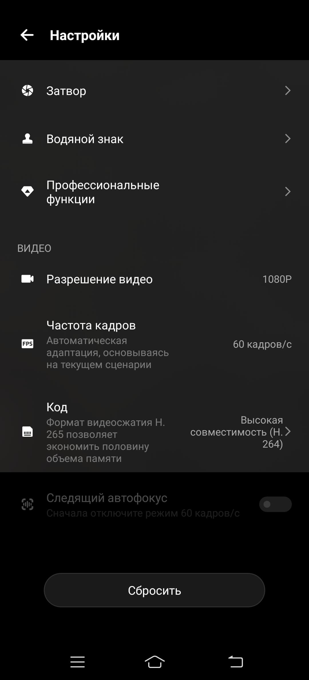 В интерфейсе есть все современные «фишки» мобильной камеры: следящий автофокус позволяет выбрать любой объект в кадре и сфокусироваться на нем, даже если он исчез из поля зрения, а затем появился вновь. Функция автоматического масштабирования Autozoom поможет удержать выбранный объект в центре, функция 3D Sound Tracking отслеживает человеческую речь и звуки вне зависимости от направления движения объектов. Сохранять снимки в RAW нельзя.