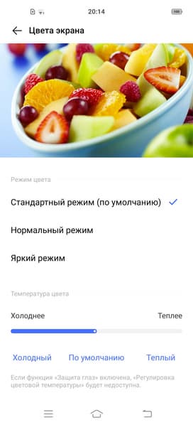 Фотография выше получена после выбора профиля Нормальный режим в настройках экрана, всего их три.