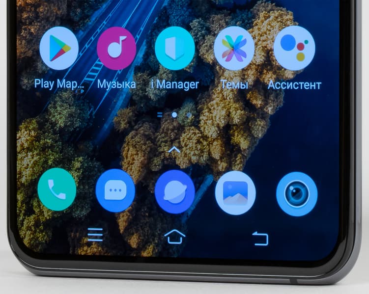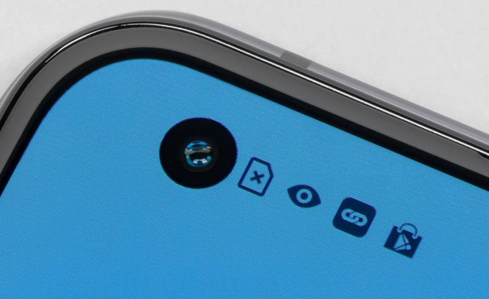 Фронтальная камера получила собственный круглый вырез прямо в матрице дисплея, но расположена она как-то странно: не в самом углу, а на достаточном отдалении от него. Выглядит не очень эстетично, да и места занимает больше, потому что левее нее ничего не выводится, все элементы на панели уведомлений рисуются правее.