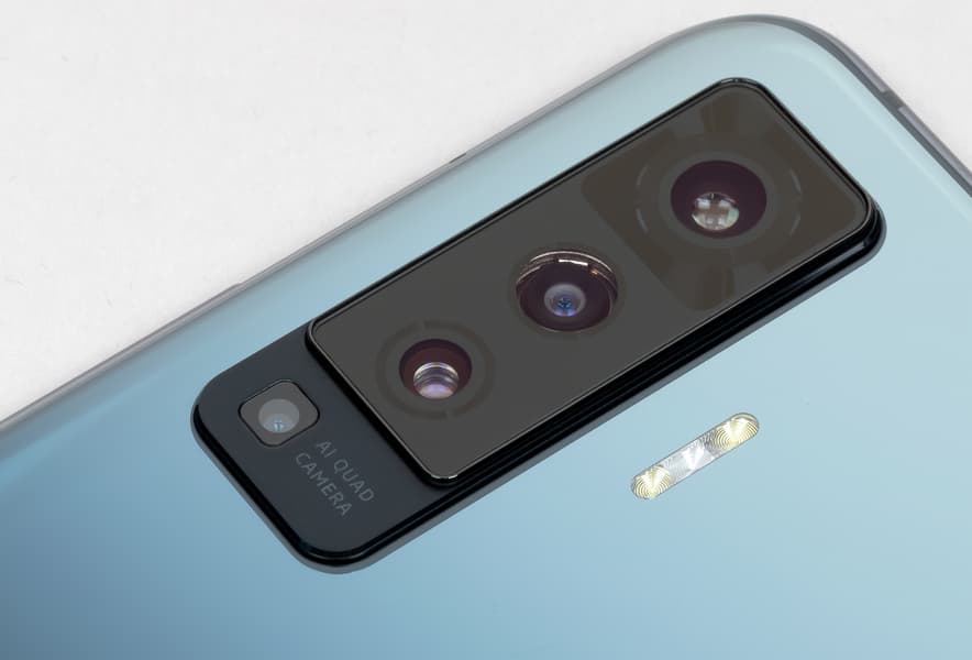 На тыльной стороне у vivo X50 разместилось четыре модуля камер, как и у его старшего брата с суффиксом Pro. Однако состав этих модулей немного другой: вместо «полноценного» телевика добавился макрообъектив.