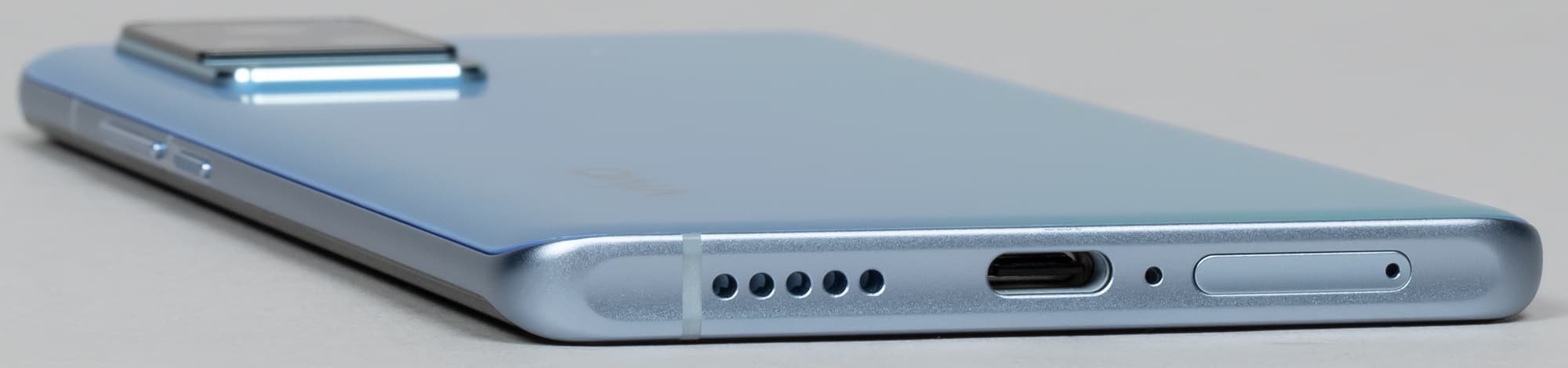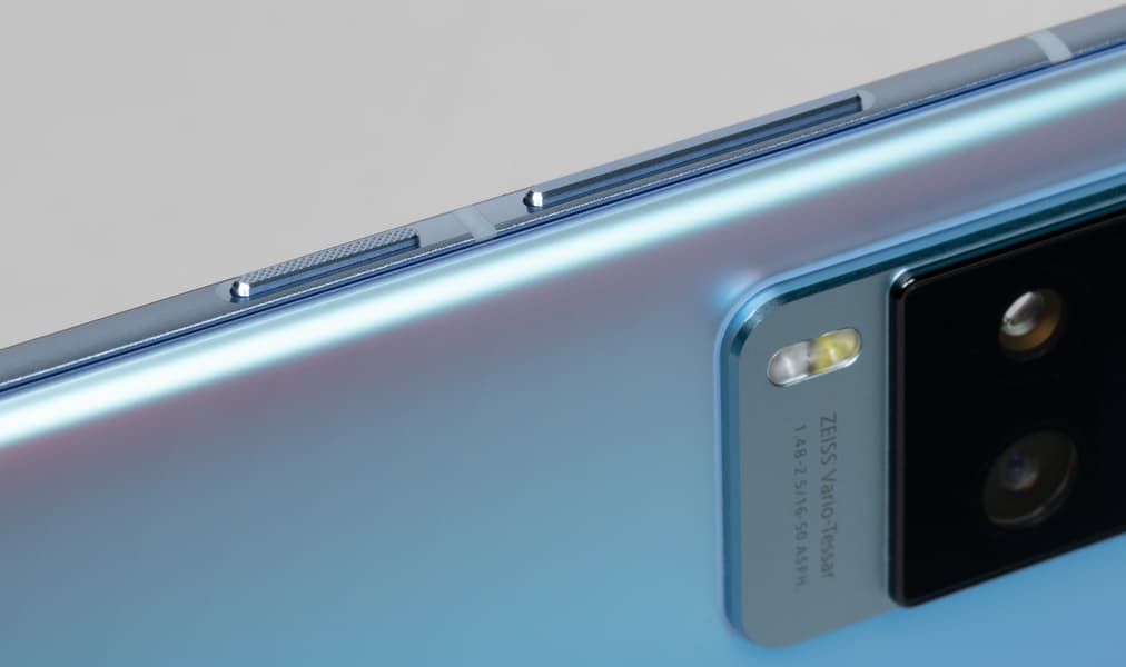 Не считая скользких обводов и зауженной неудобной для удержания рамки, по материалам у корпуса Vivo X60 Pro все хорошо: тыльная сторона выполнена из закаленного стекла Gorilla Glass 6, а переднее стекло, по информации самого разработчика, имеет наименование «Schott Xensation UP». Соединяет стекла между собой по всему периметру алюминиевая рамка, красиво расширяющаяся к верхнему и нижнему торцам.