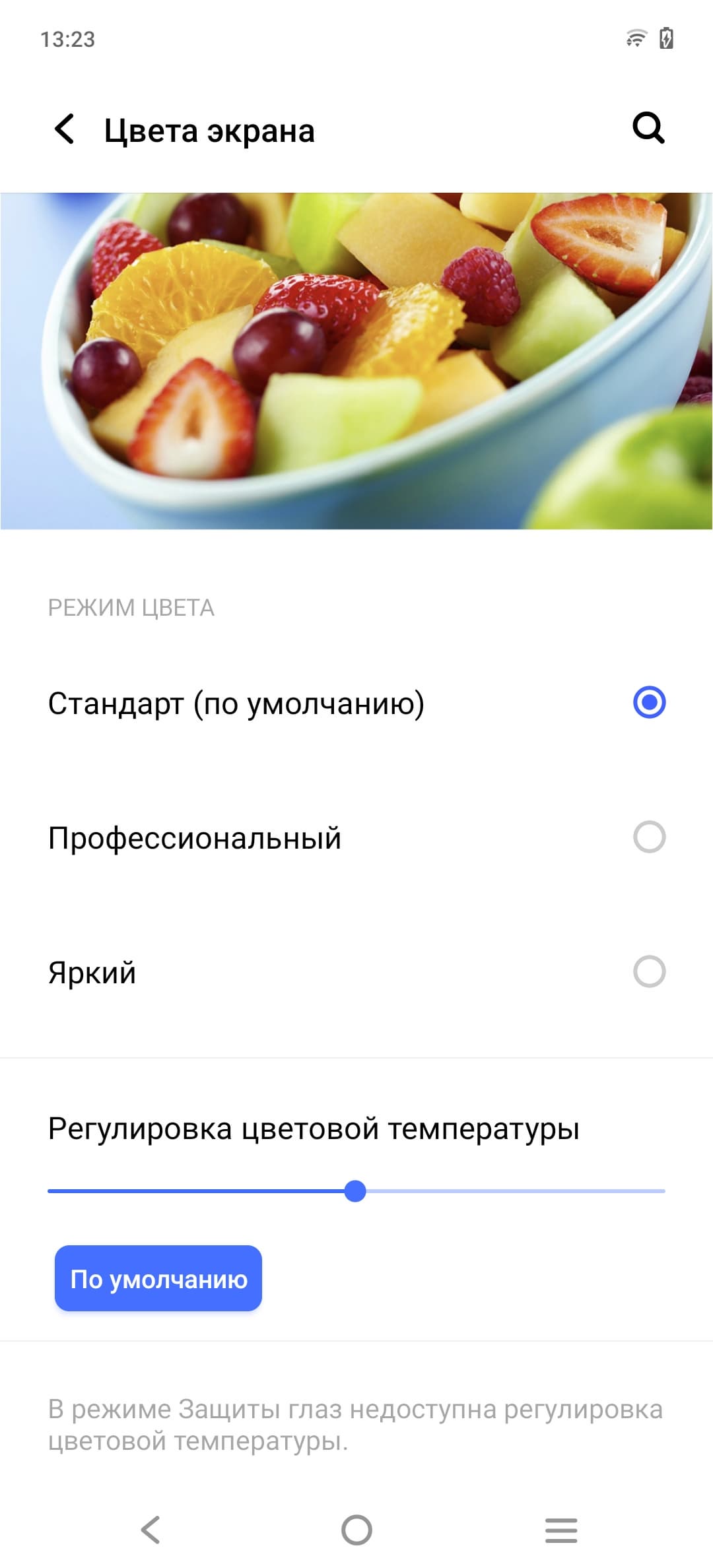 Фотография выше получена после выбора профиля Профессиональный в настройках экрана, всего их три.