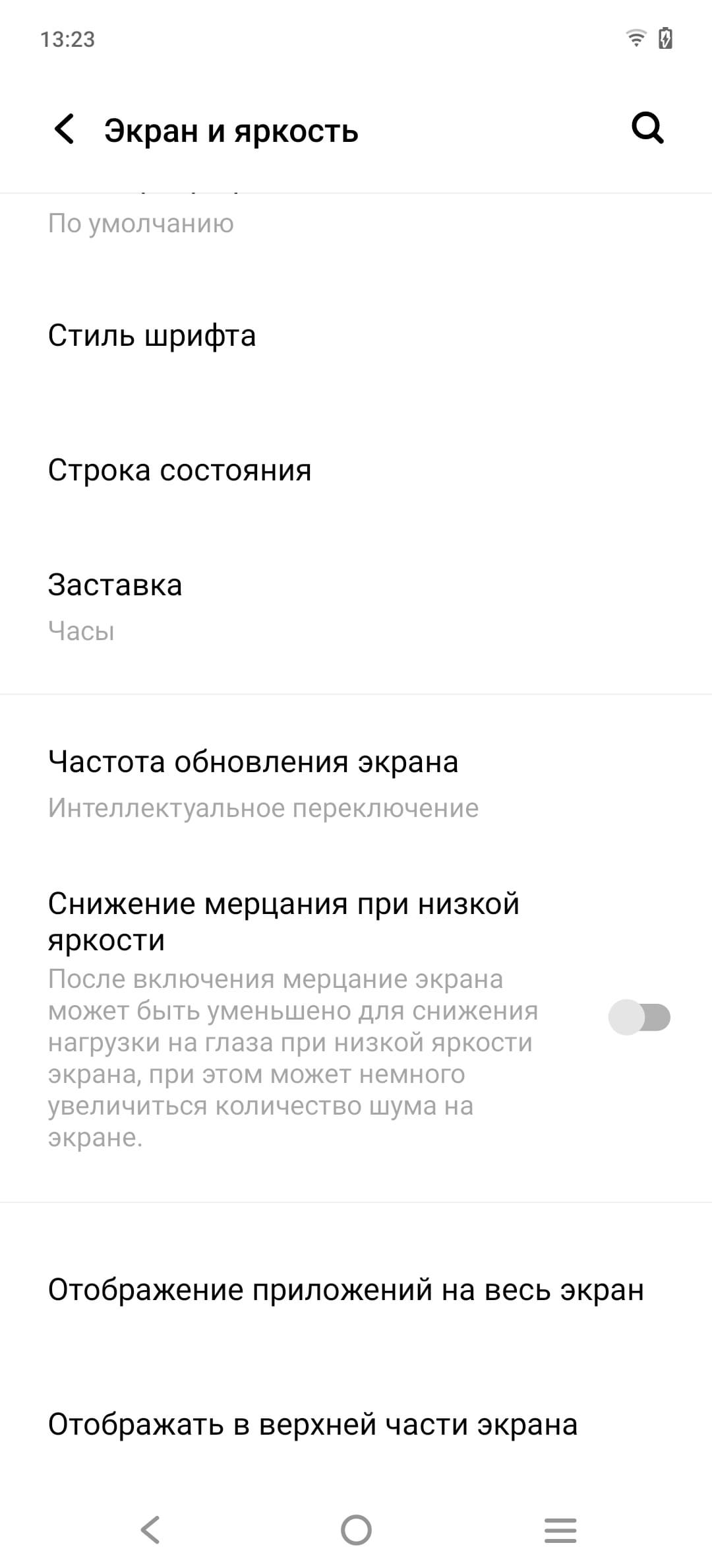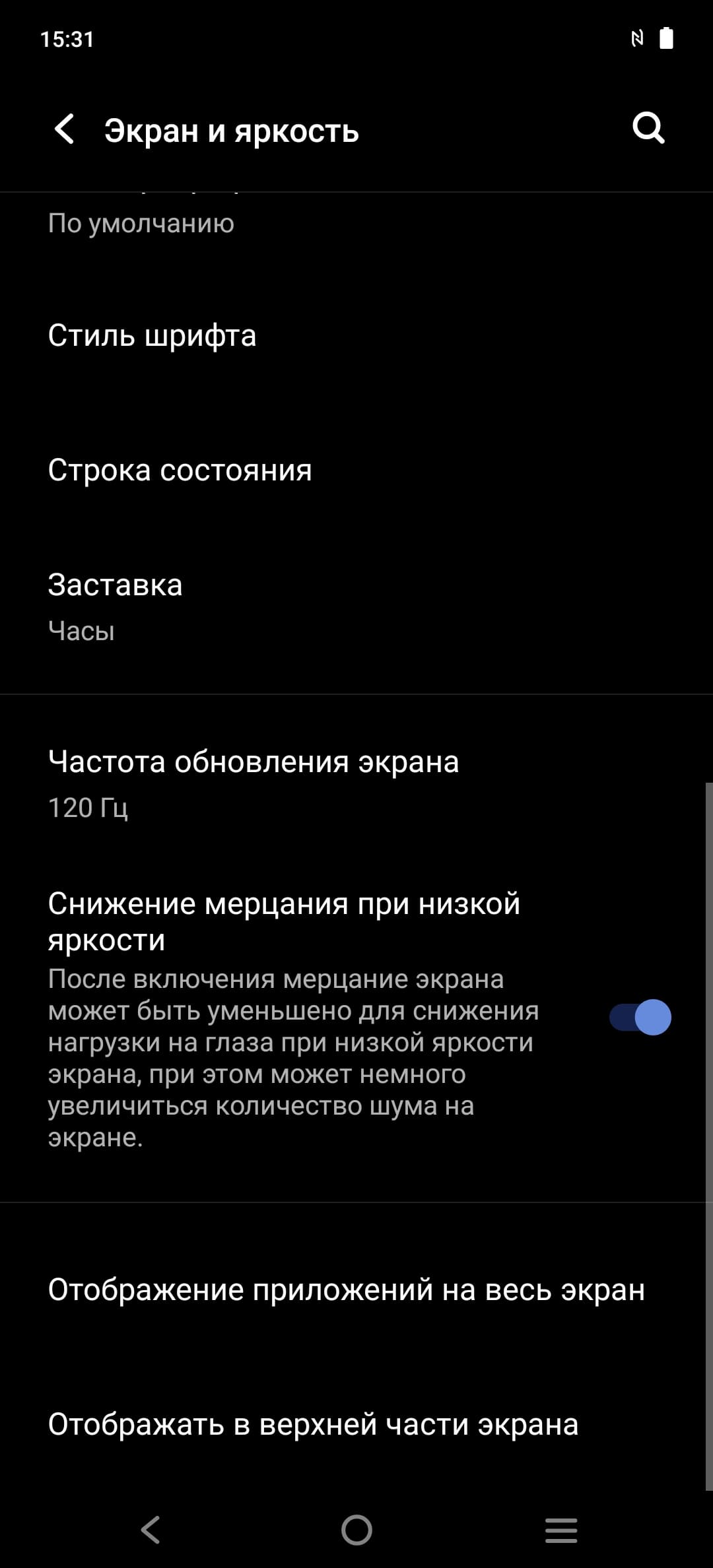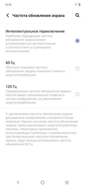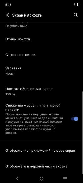 В настройках экрана можно включить режим с повышенной до 120 Гц частотой обновления:
