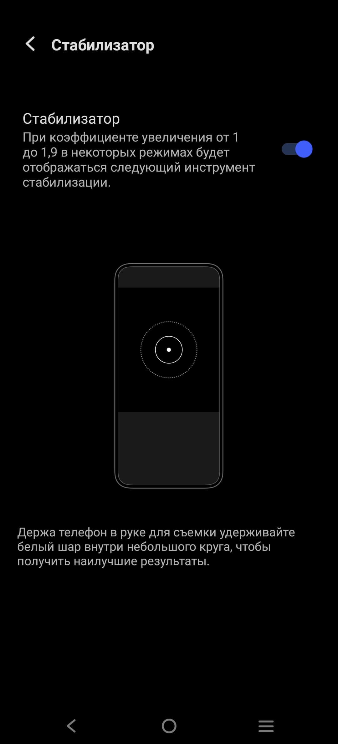 Использована обновленная система стабилизации Gimbal 2.0, впервые появившаяся в предыдущем смартфоне той же флагманской серии — Vivo X50 Pro. Работа этой системы на двухшарнирном соединении с пятиосевой стабилизацией сопровождается соответствующей анимацией на экране: кружок «плавает» в другом кружке. Также вам ни в коем случае не дадут забыть, что к созданию камер этого смартфона имеет какое-то отношение марка Zeiss с очень славным прошлым.