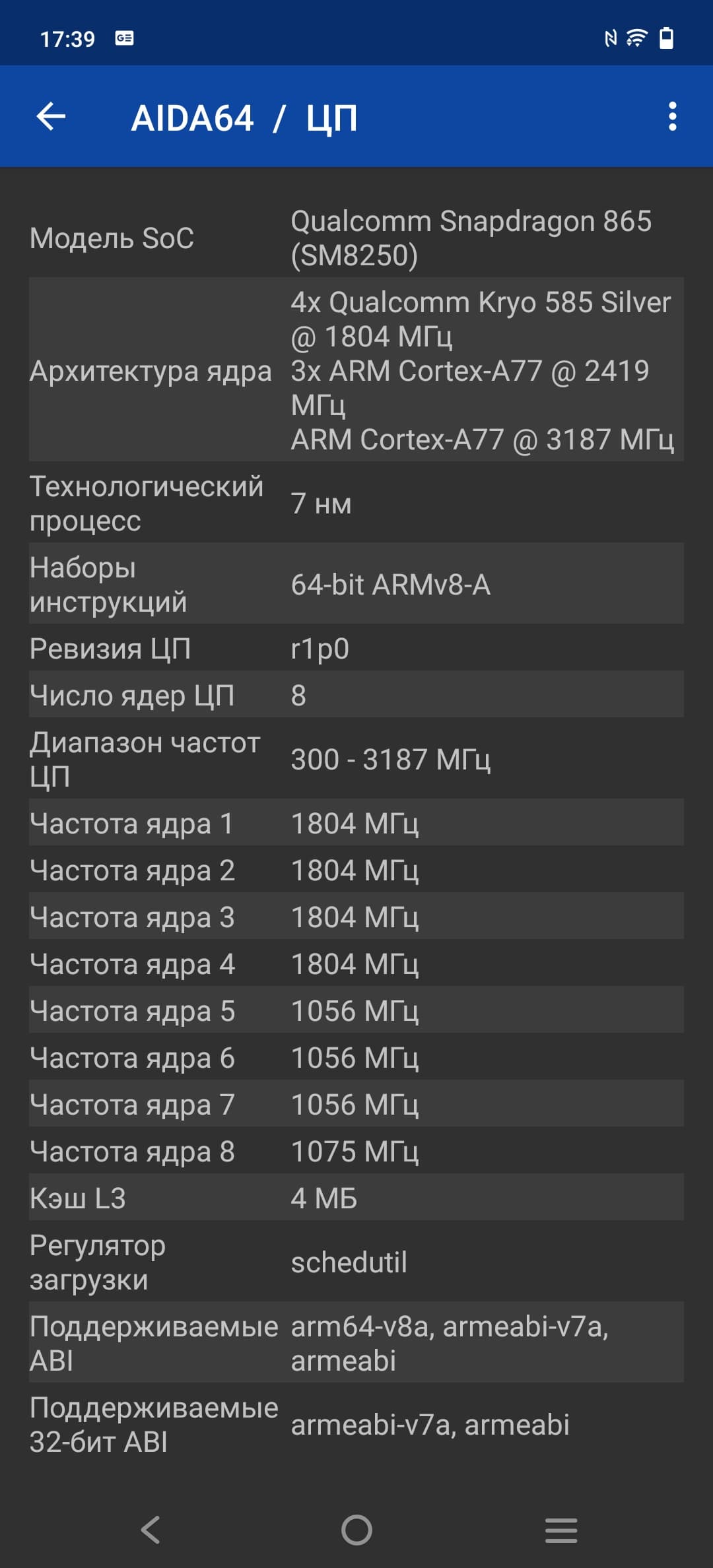 - SoC Qualcomm Snapdragon 870 (SM8250-AC), 8 ядер (1×Kryo 585 Prime @3,2 ГГц + 3×Kryo 585 Gold @2,42 ГГц + 4×Kryo 585 Silver @1,80 ГГц)